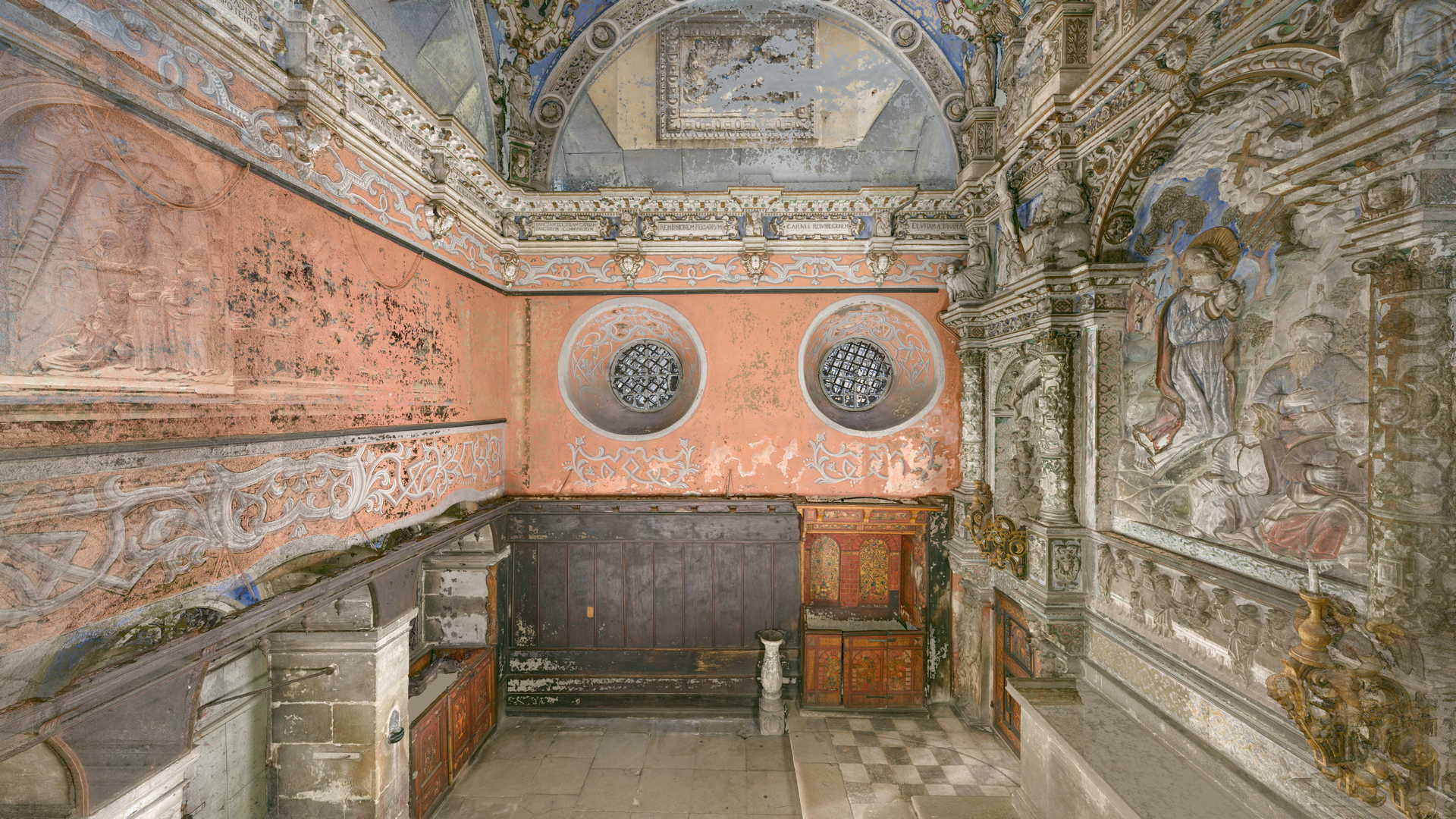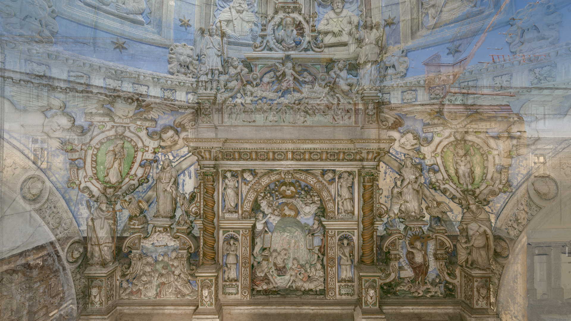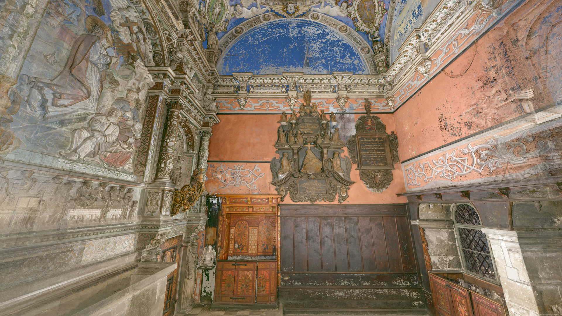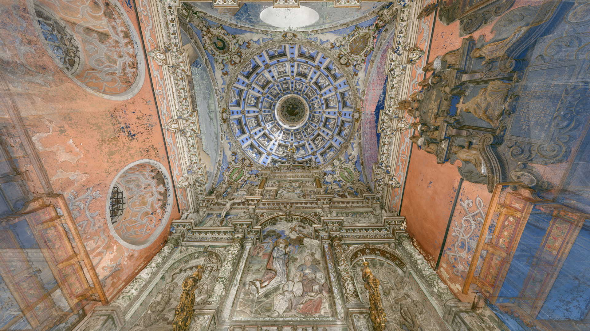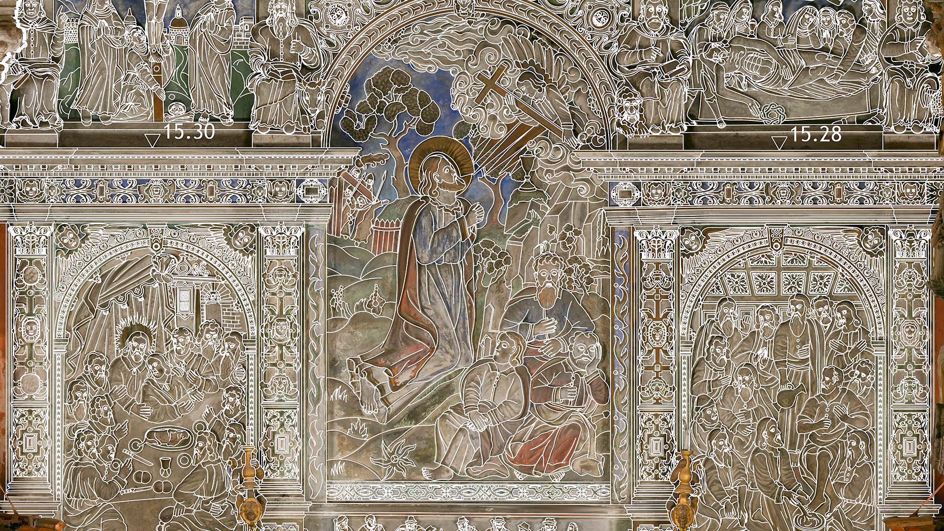 Під час зйомки, окрім звичайного лазерного сканування, ми використовували дрон і камеру, встановлену на стовпі. Крім того, ми встановили в каплиці спеціальні будівельні риштування, щоб зафіксувати всі деталі її інтер’єру. Завдяки цьому нам вдалося отримати точні дані лазерного сканування та фотографії. Згодом ми обробили ці вхідні дані, що призвело до створення фотограмметричної документації каплиці, а також детальної 2D-документації CAD і високополігональної сітчастої 3D-моделі.
