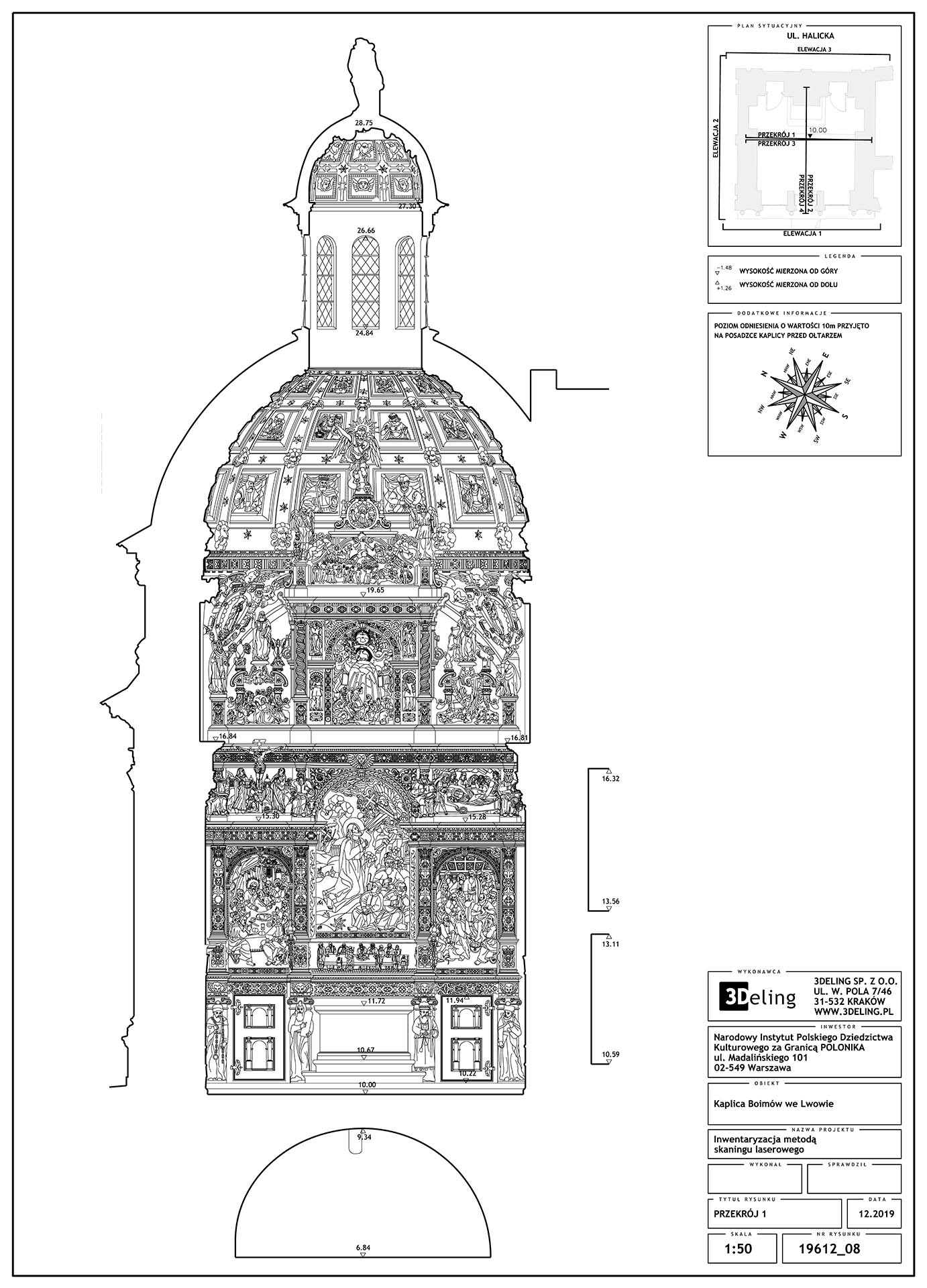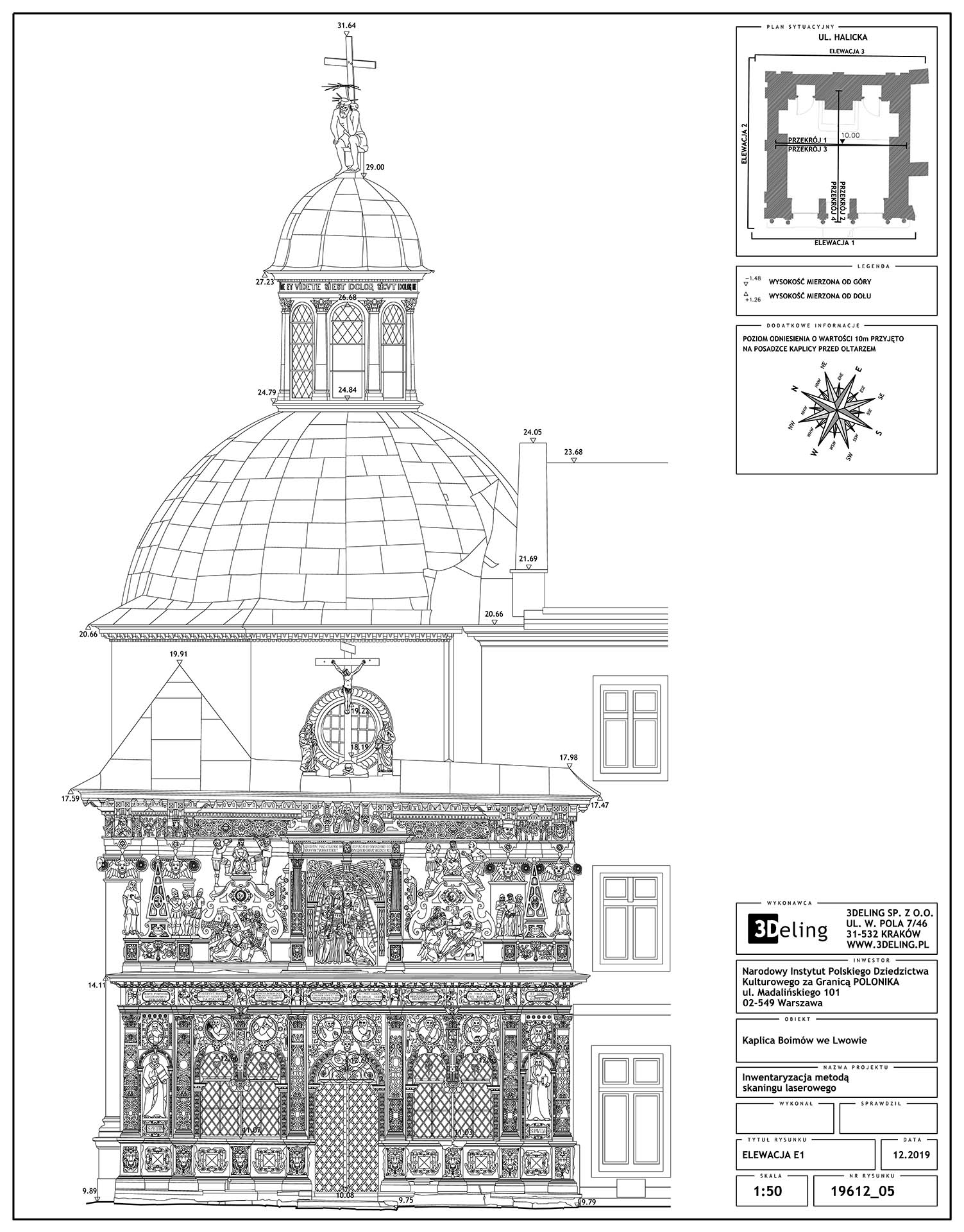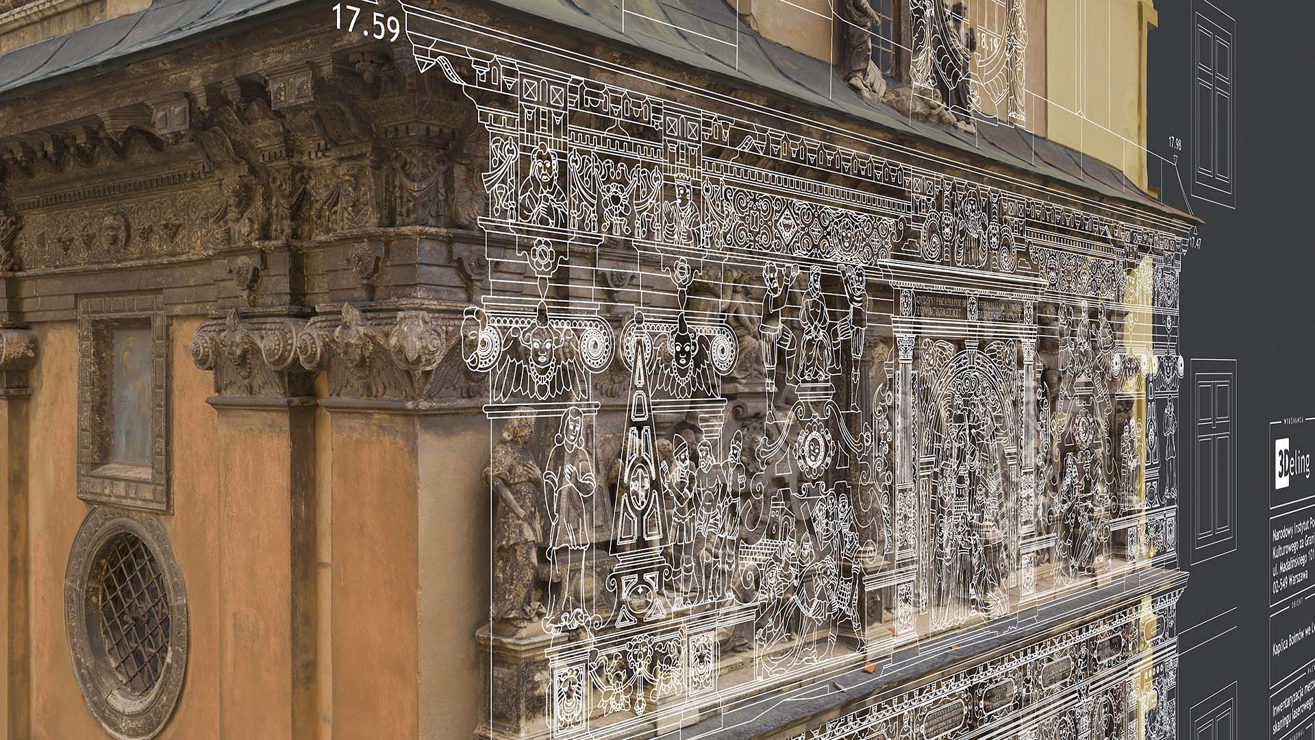 Цей проєкт, виконаний на замовлення Інституту «Полоніка» та фінансований з державних коштів, мав на меті провести інвентаризацію цієї ренесансної будівлі. В результаті ми передали 2D-документацію Каплиці, включно із векторними зображеннями всіх, навіть найдрібніших архітектурних деталей. Ми також створили текстуровану (приблизно 1 мм піксель) модель високополігональної сітки з високою роздільною здатністю.
