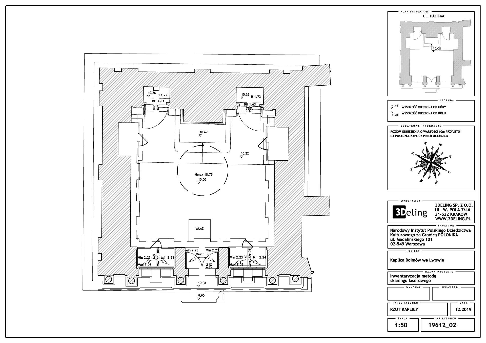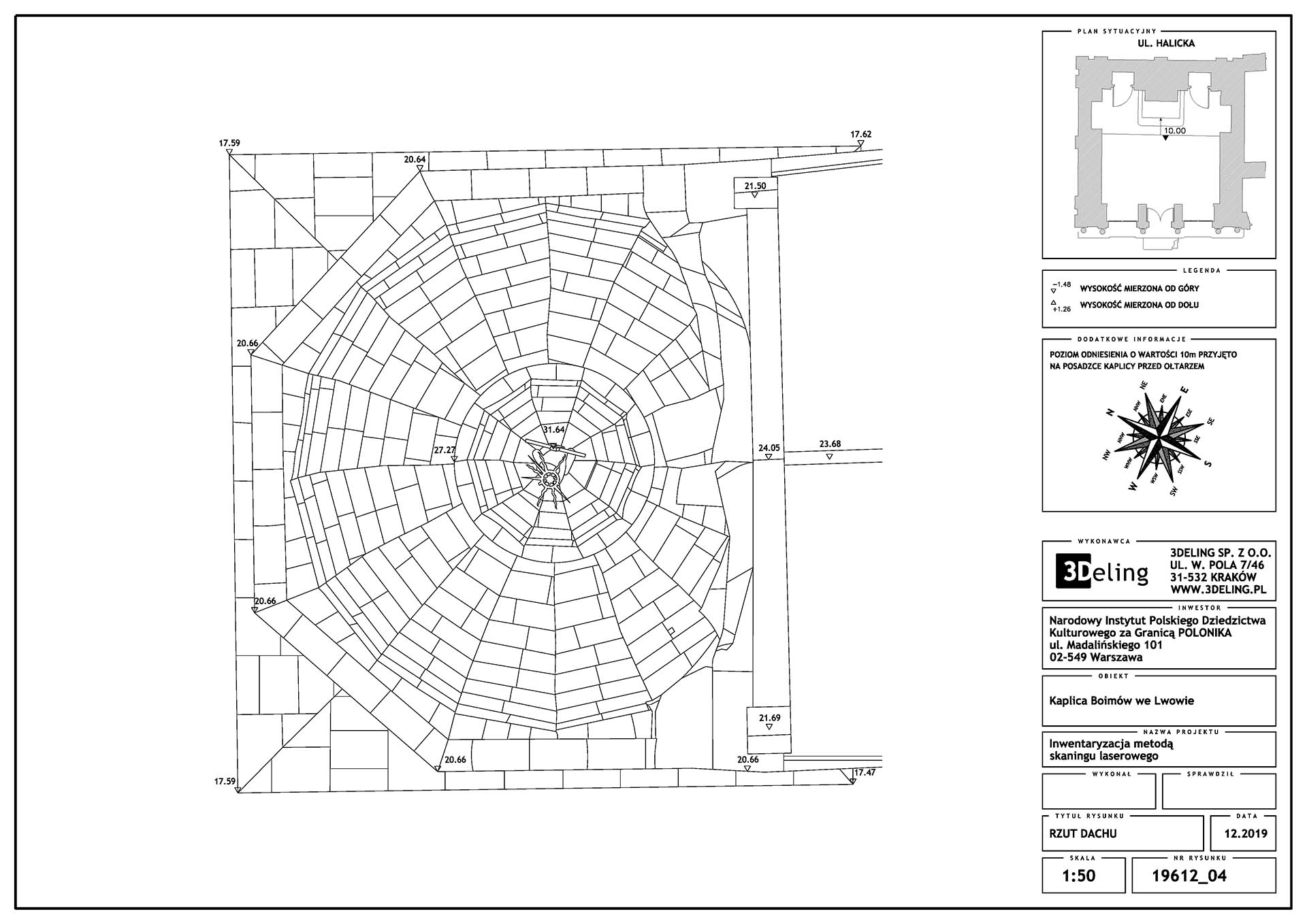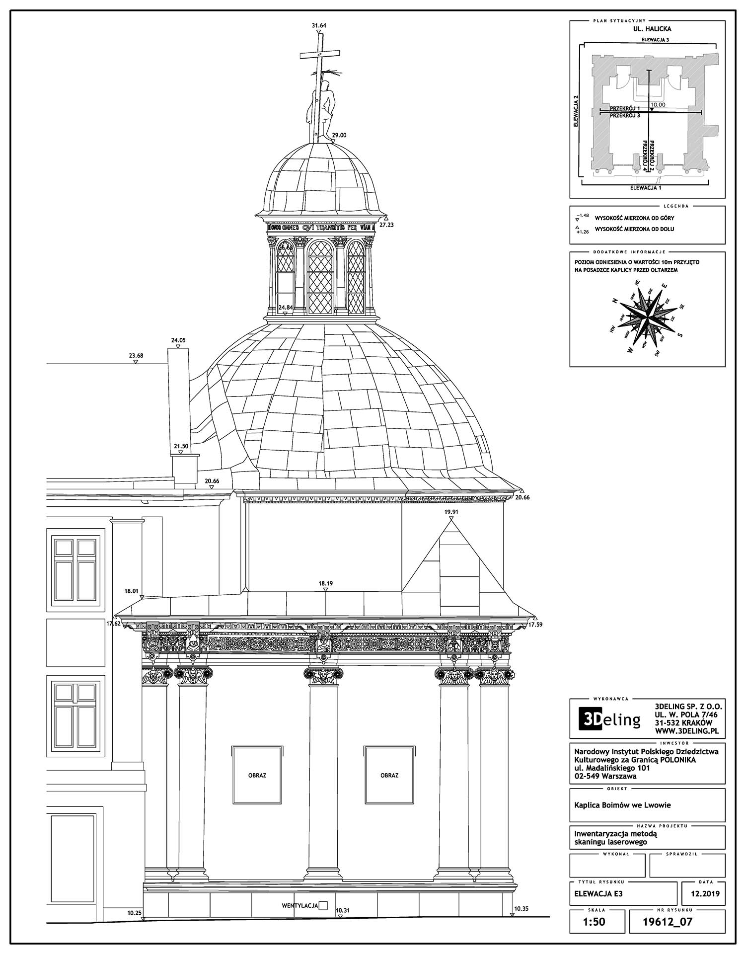 Цей проєкт, виконаний на замовлення Інституту «Полоніка» та фінансований з державних коштів, мав на меті провести інвентаризацію цієї ренесансної будівлі. В результаті ми передали 2D-документацію Каплиці, включно із векторними зображеннями всіх, навіть найдрібніших архітектурних деталей. Ми також створили текстуровану (приблизно 1 мм піксель) модель високополігональної сітки з високою роздільною здатністю.