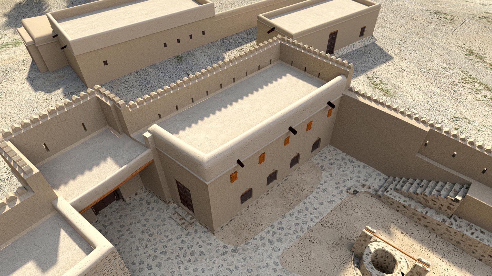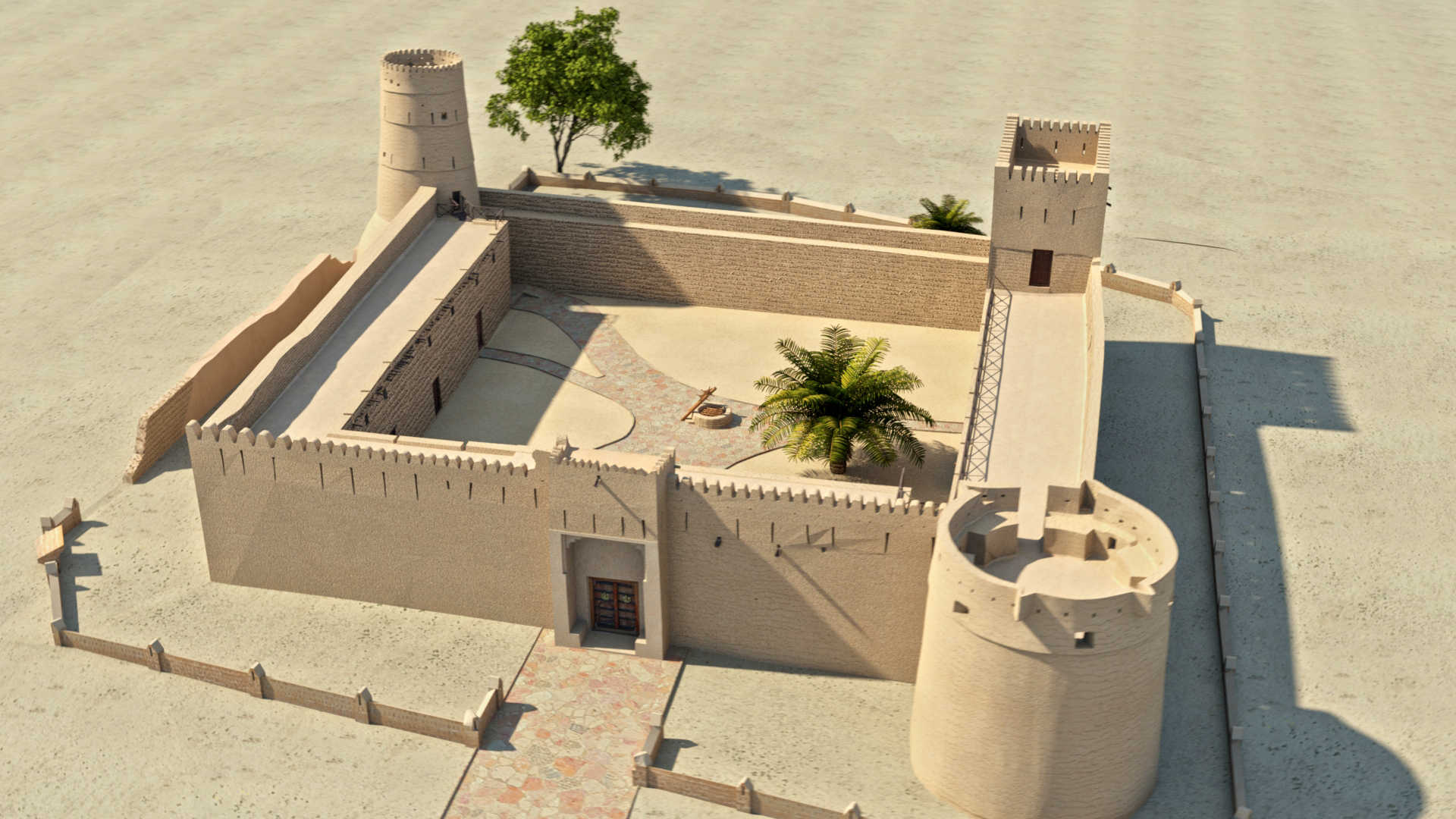 Фортеця, побудована у 19 столітті і займає площу близько 1700 квадратних метрів. Це висока споруда з товстими стінами, які оточують великий внутрішній двір. Фортеця побудована переважно з гірських порід, грязі та стовбурів пальм.