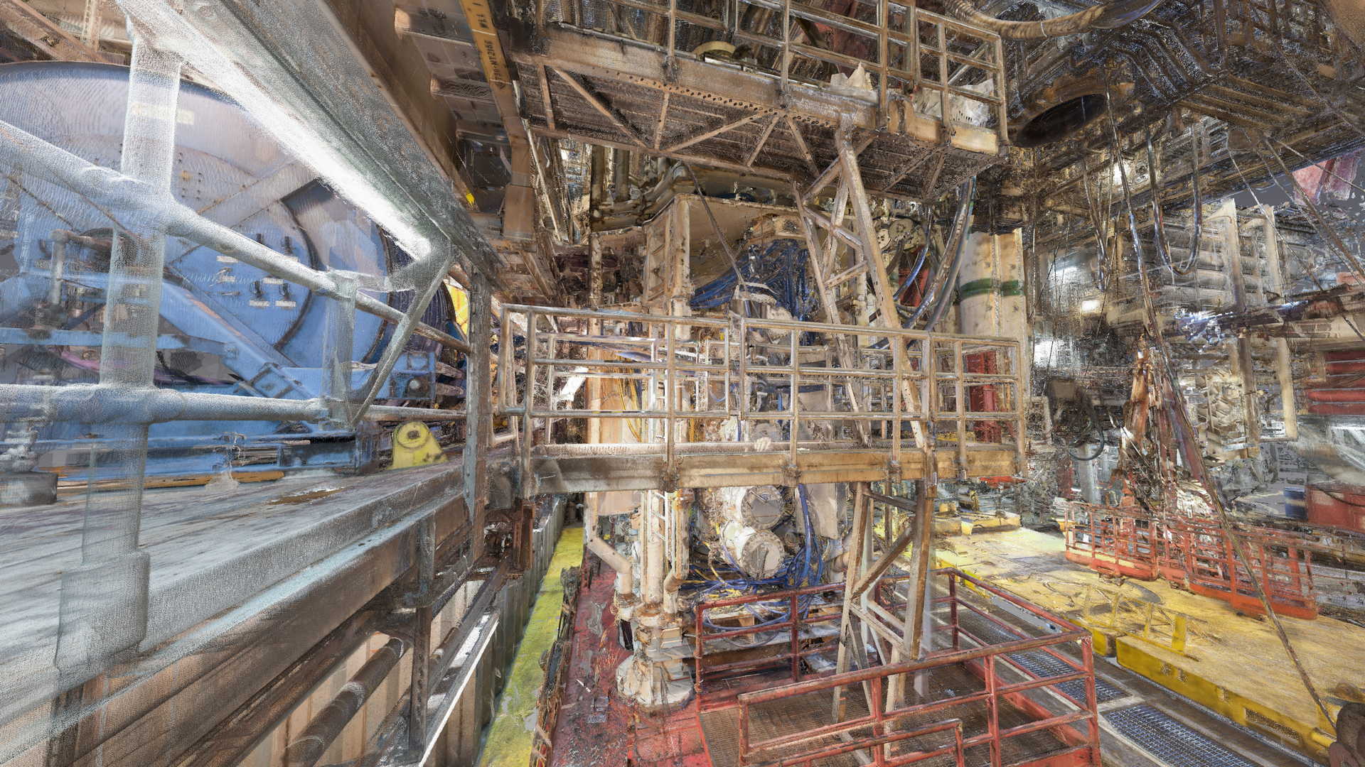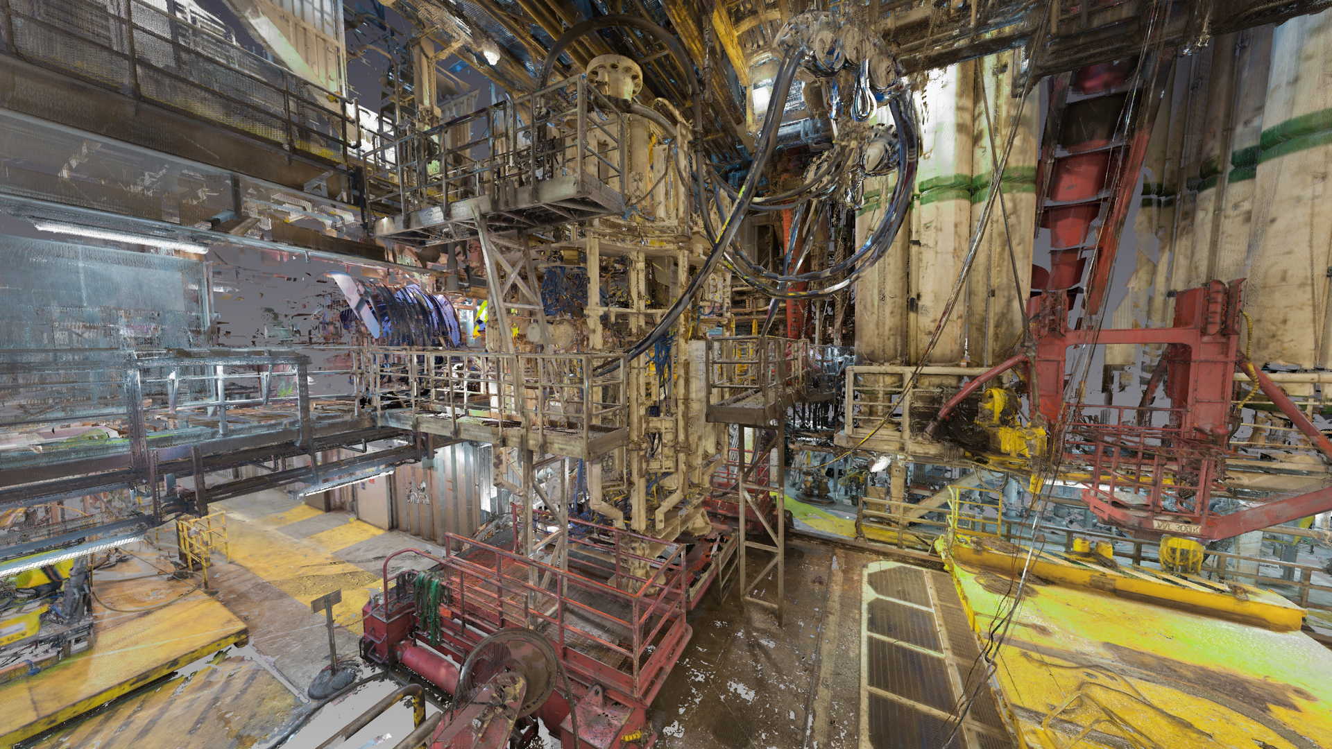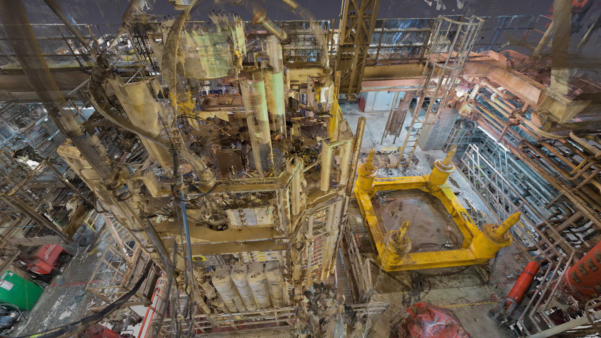 Ми завершили лазерне 3D-сканування на платформі в Північному морі. Предметом вимірювання був противикидний превентор (BOP). У планах клієнта була заміна деякого устаткування, тому він замовив лазерне 3D-сканування та максимально точне та детальне моделювання на основі хмари точок. Файл був наданий у форматі AVEVA PDMS – геометрія без атрибутів та у форматі DGN.