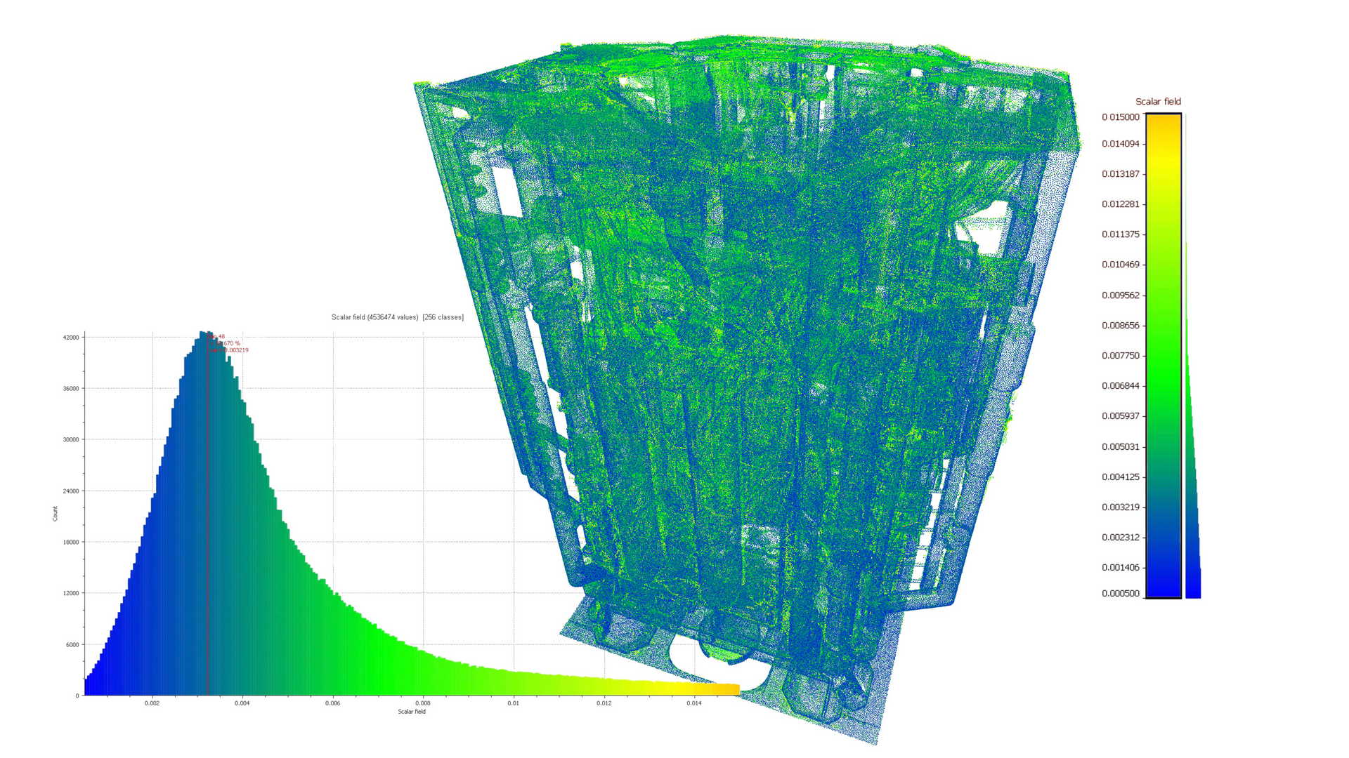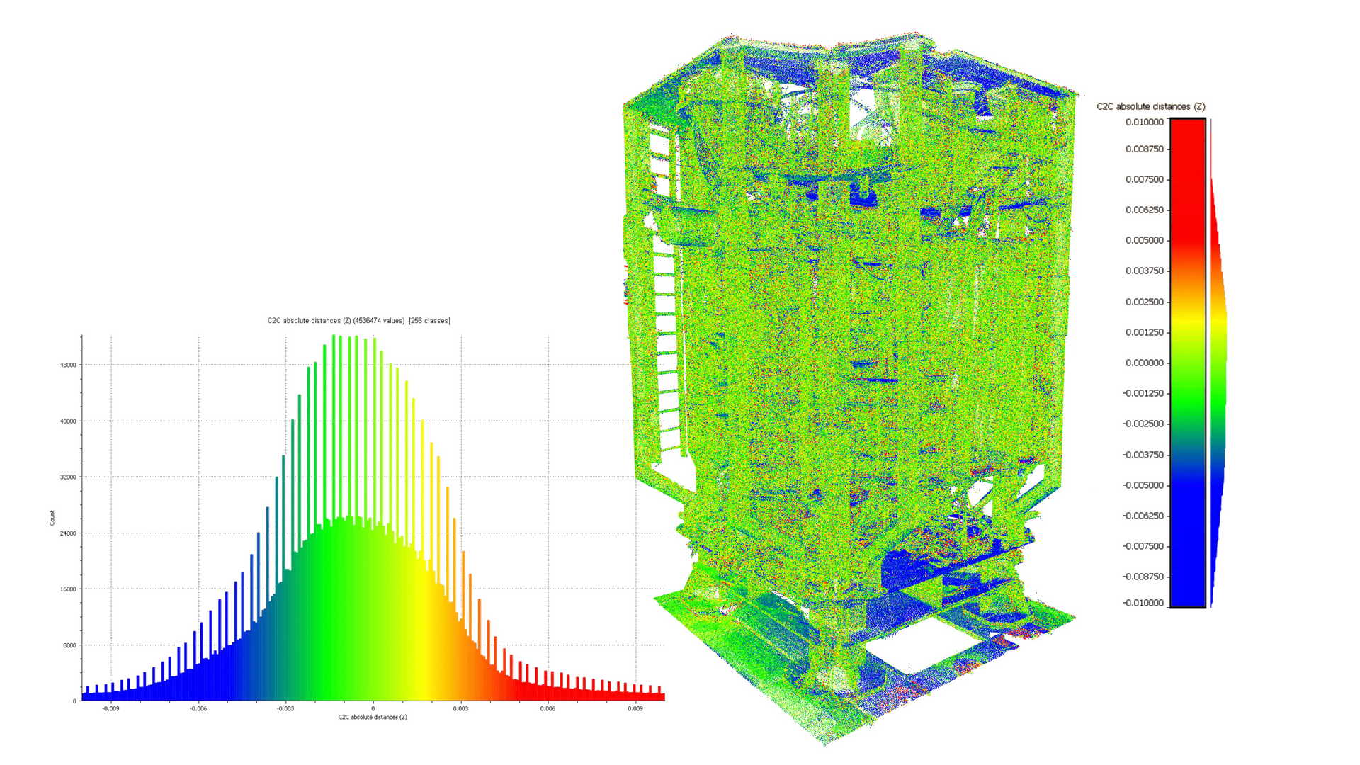 Крім 3D-моделювання, проводився аналіз деформації. Аналіз стосувався елементів нижньої частини BOP, які, як очікується, деформувалися під навантаженням. Незважаючи на те, що лазерне сканування було виконане за допомогою сканера середнього діапазону з точністю сканування 2 мм, ми помітили деякі цікаві деформації.