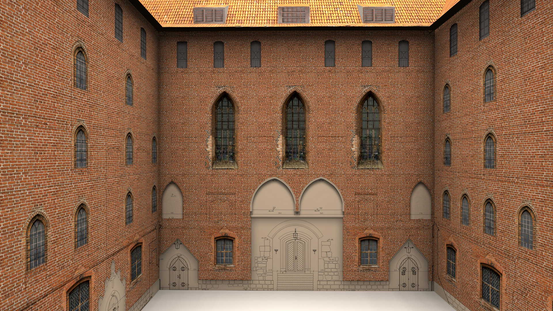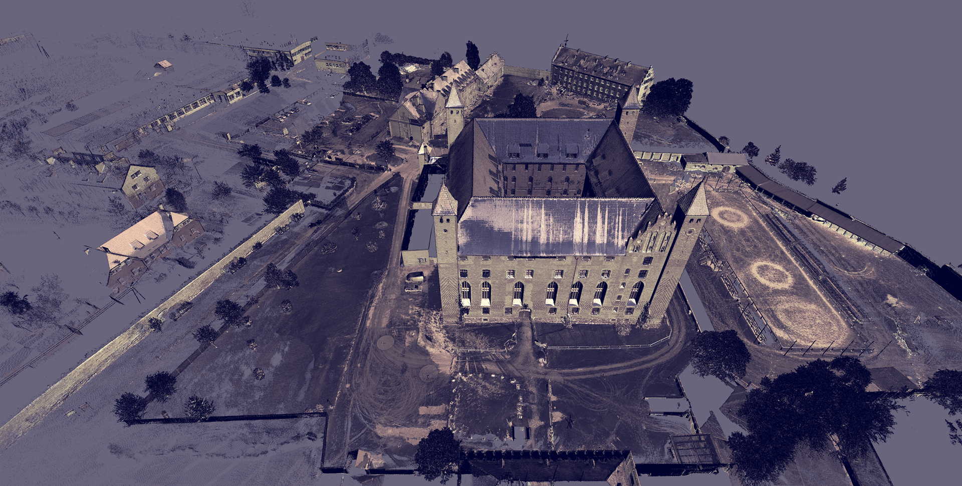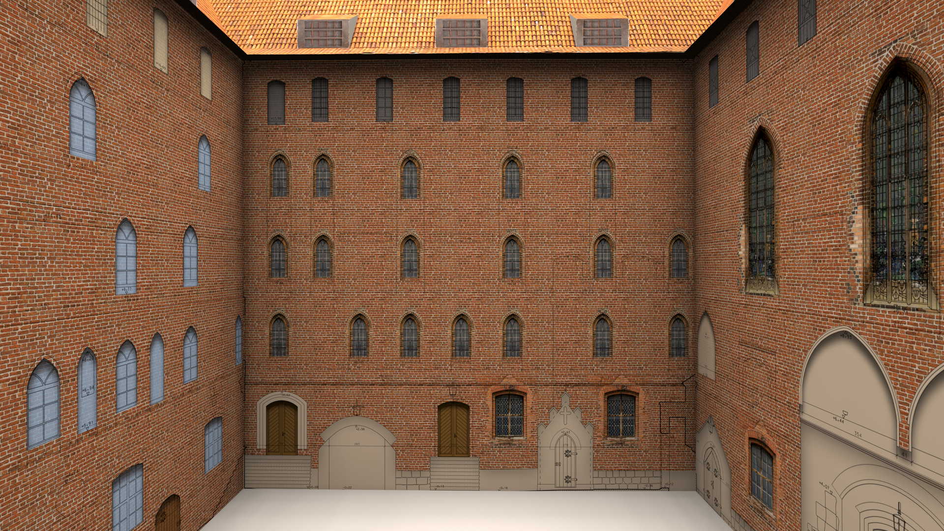 Завдяки лазерному скануванню ми змогли зібрати повну просторову інформацію про цю величезну історичну будівлю. Точність сканування була підтверджена результатами звітів про перевірку. Двовимірні креслення були створені в програмі Bentley MicroStation V8i за допомогою плагіна Leica CloudWorx, що дозволяє відображати хмару точок у середовищі CAD.