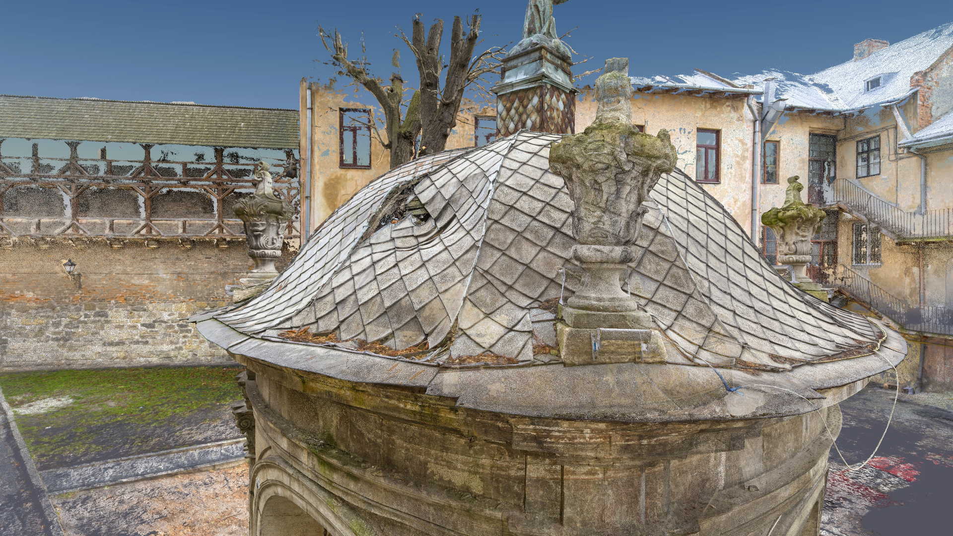 В результаті роботи із цим проєктом ми надали 2D-документацію CAD, яка складається з:розрізів, фасадів і плану місцевості. Крім того, ми створили ортозображення (метричні фото) кожного фасаду на основі сітчастої моделі з високою роздільною здатністю. Тривимірна сітчаста модель, після відповідного зменшення трикутної сітки, перетворена на низькополігональну, підходить для розміщення на онлайн-сайтах, таких як sketchfab. Для візуалізації анімації об’єктів використовувалася попередня, «необроблена» версія сітчастої моделі, яку ми опублікували на нашому Youtube-каналі.