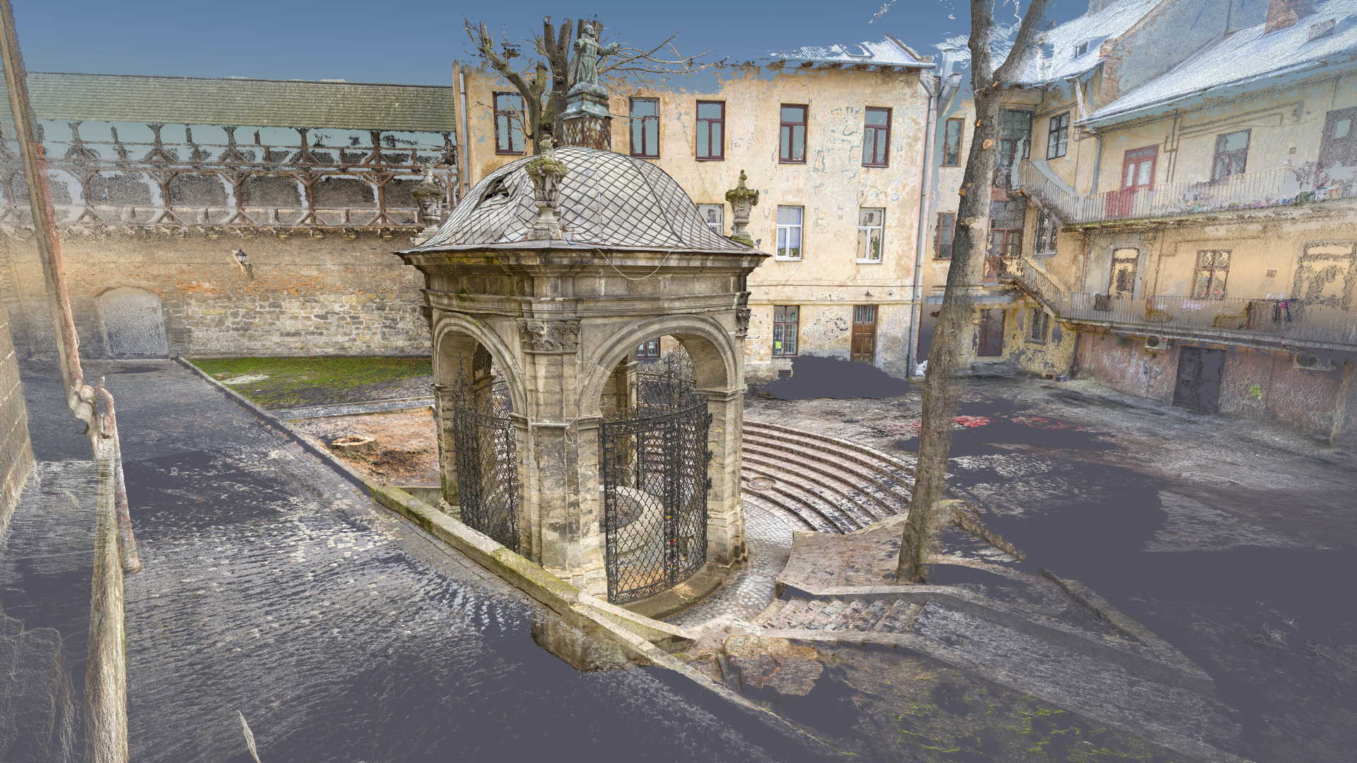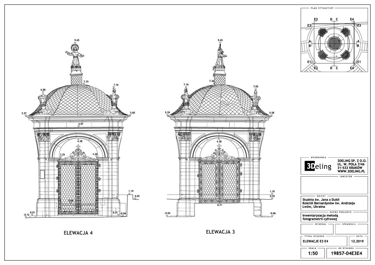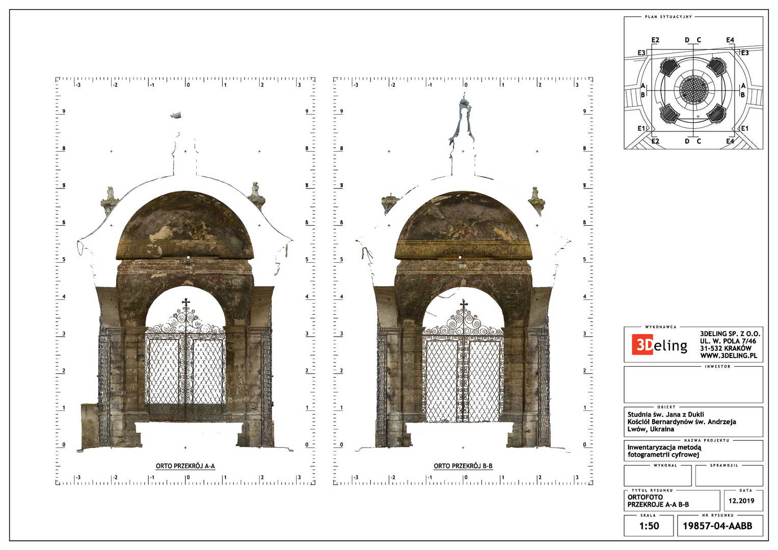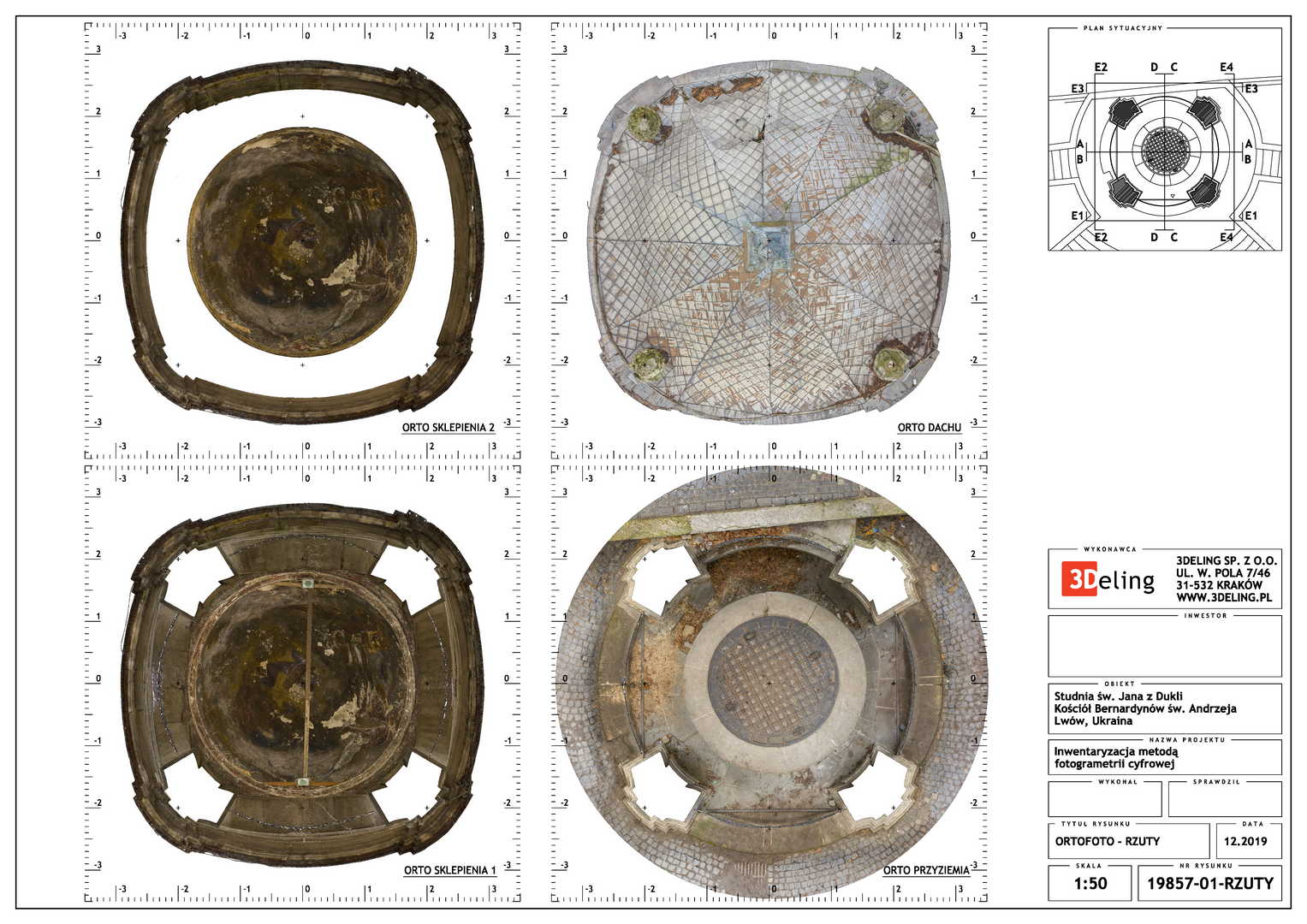 На замовлення Інституту «Полоніка» оцифрування Криниці Святого Іоанна з Дуклі у місті Львові. Об’єкт цього проєкту знаходиться біля Костелу Бернардинів у Львові. Зважаючи його масштаб і геометрію ми вирішили використовувати лише фотограмметричні інструменти, тобто цифрову камеру особливо високої роздільної здатності та геодезичний тахеометр. Другий прилад служив для вимірювання контрольних точок, необхідних для встановлення геолокації та масштабування об’єкта.