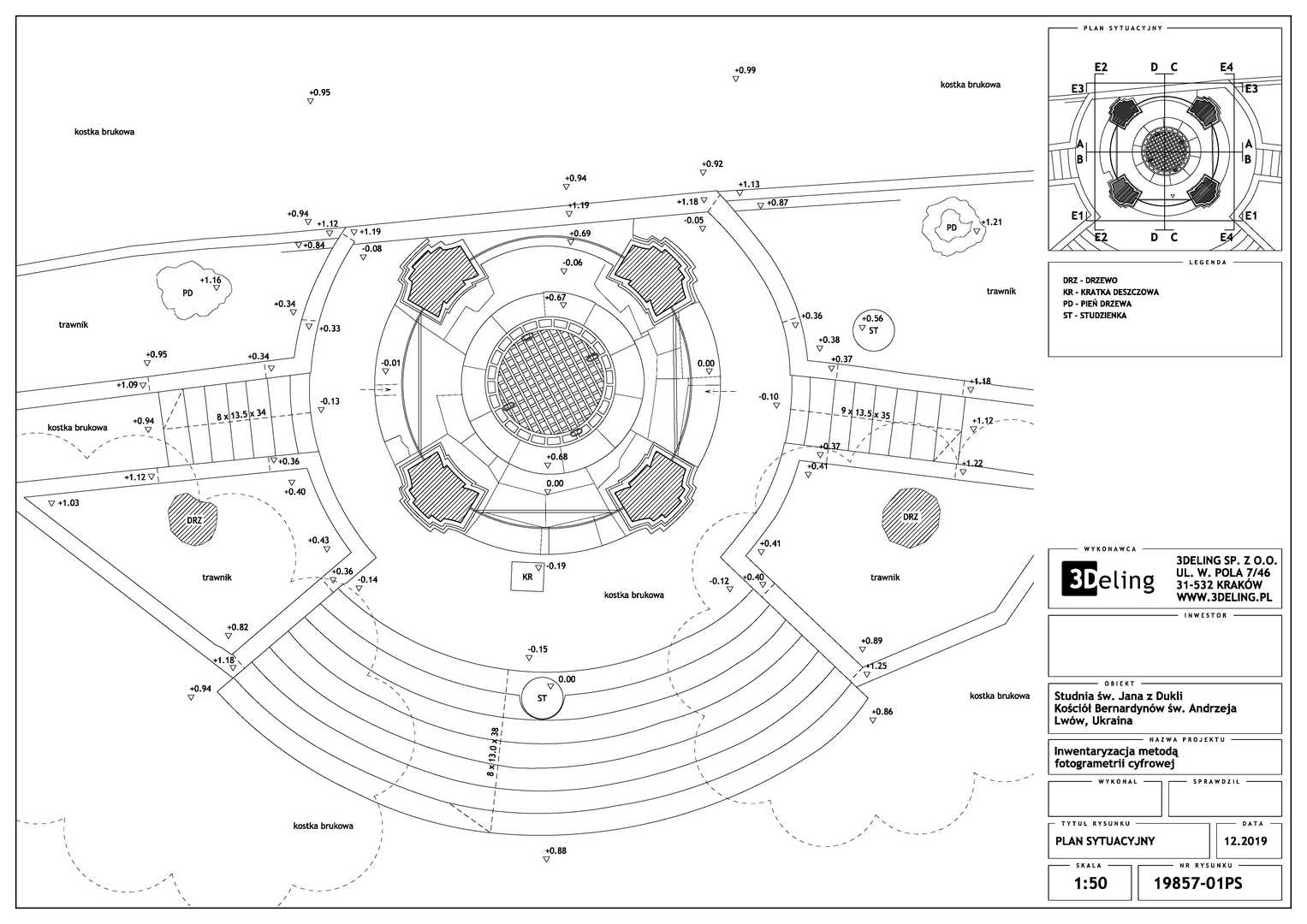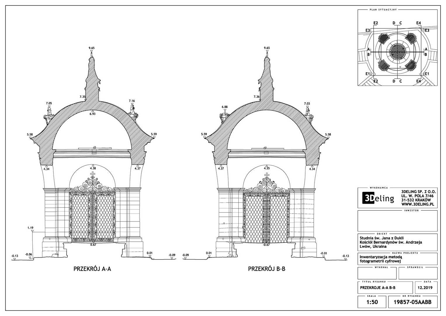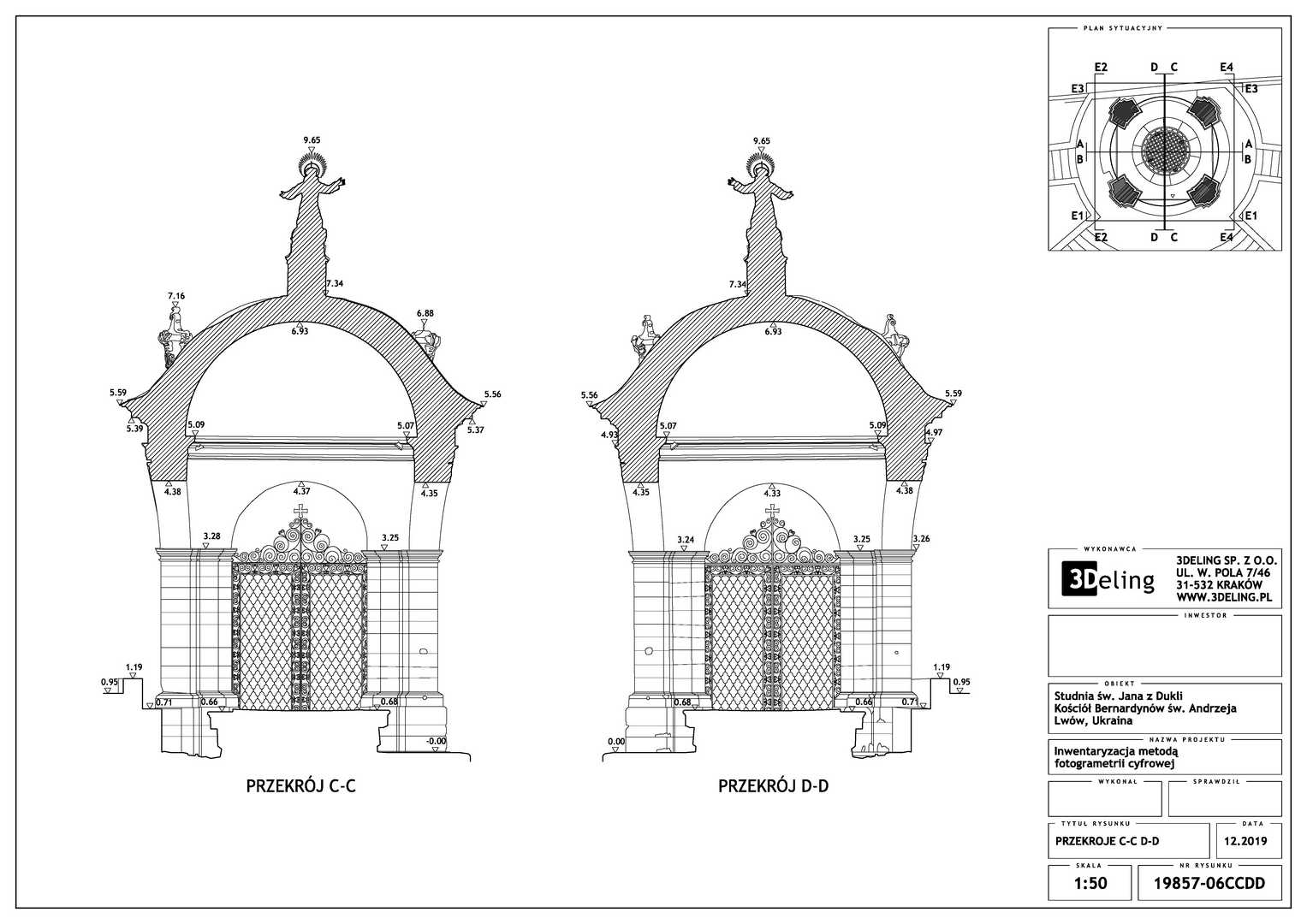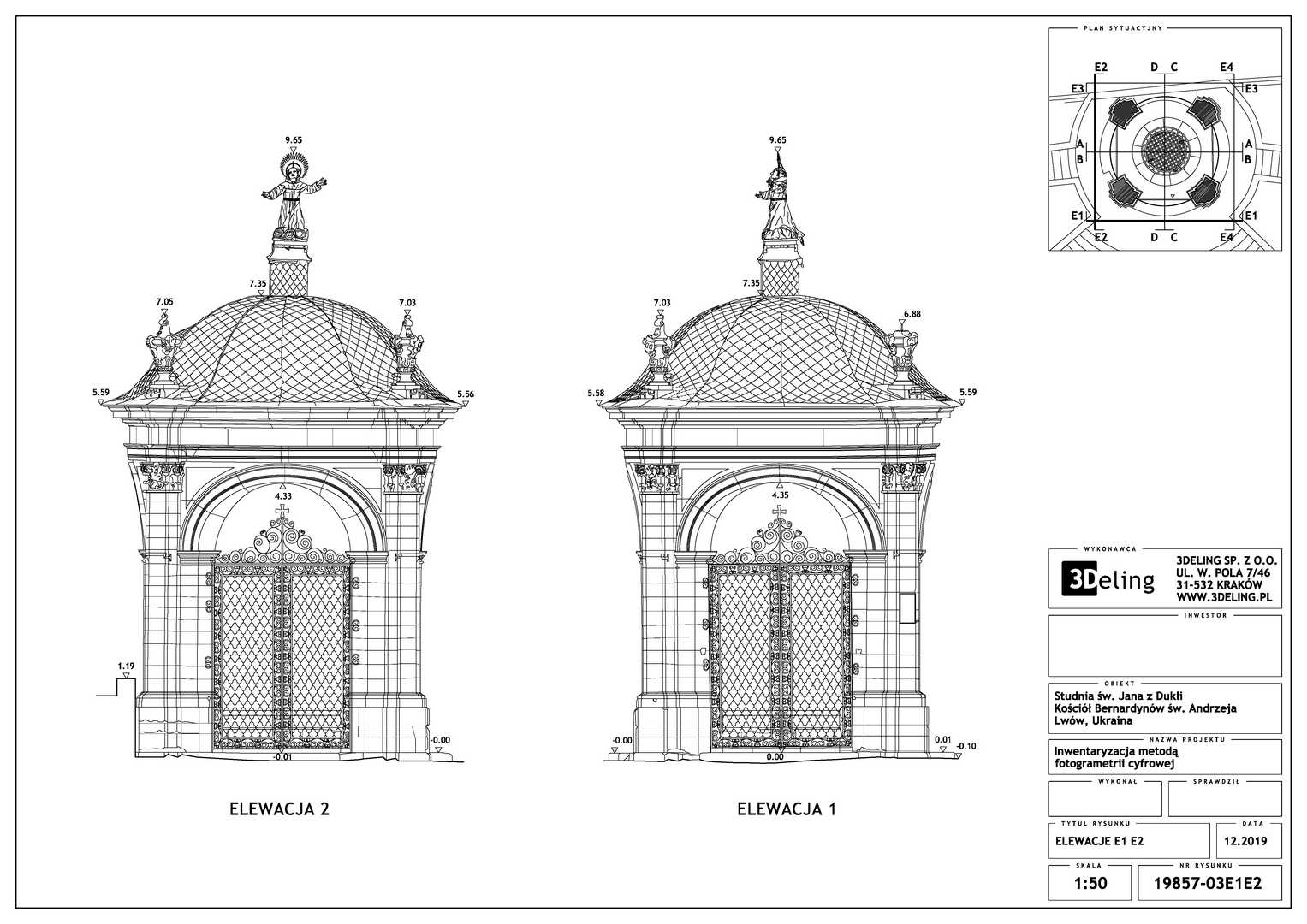 На замовлення Інституту «Полоніка» оцифрування Криниці Святого Іоанна з Дуклі у місті Львові. Об’єкт цього проєкту знаходиться біля Костелу Бернардинів у Львові. Зважаючи його масштаб і геометрію ми вирішили використовувати лише фотограмметричні інструменти, тобто цифрову камеру особливо високої роздільної здатності та геодезичний тахеометр. Другий прилад служив для вимірювання контрольних точок, необхідних для встановлення геолокації та масштабування об’єкта.