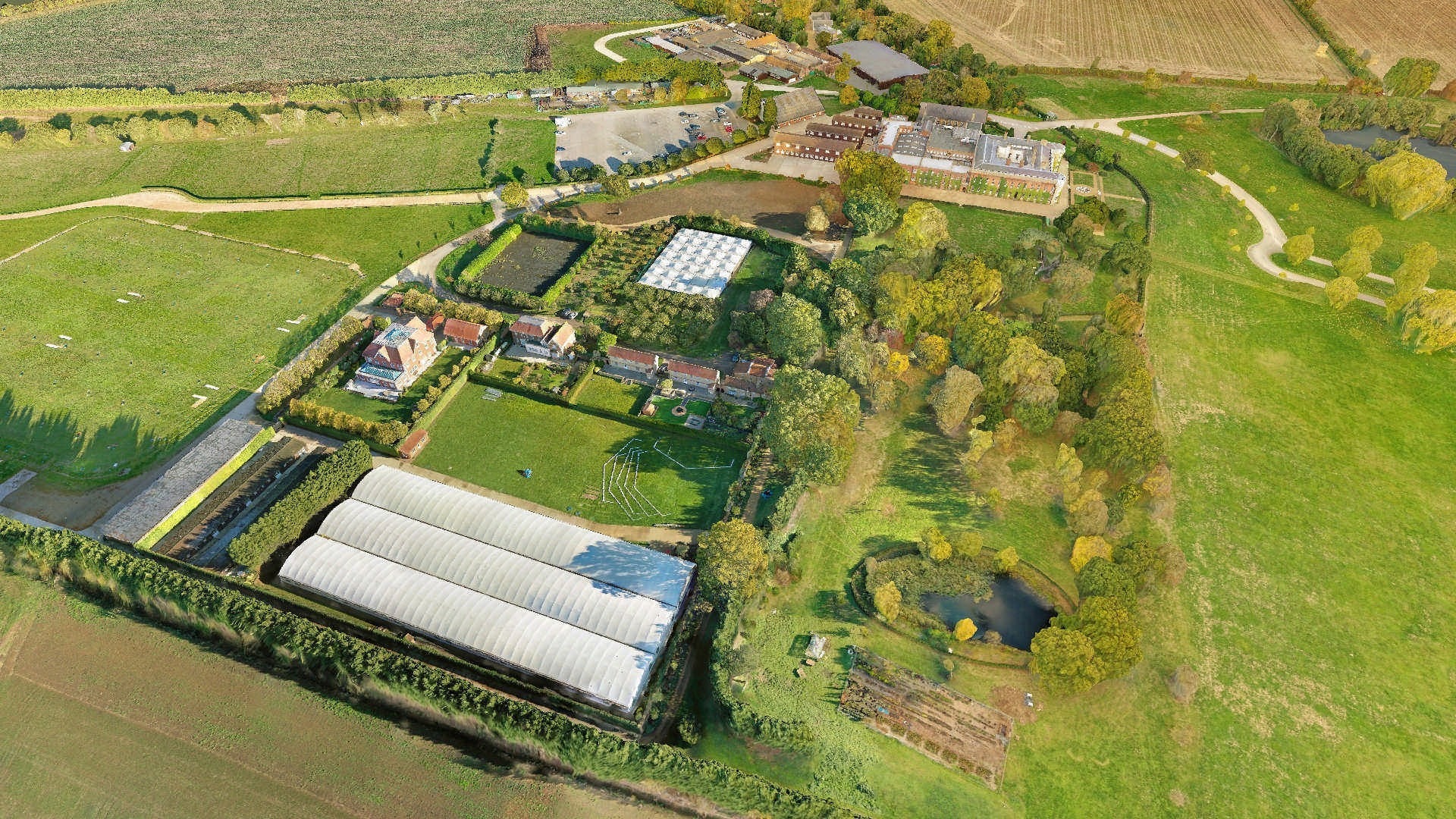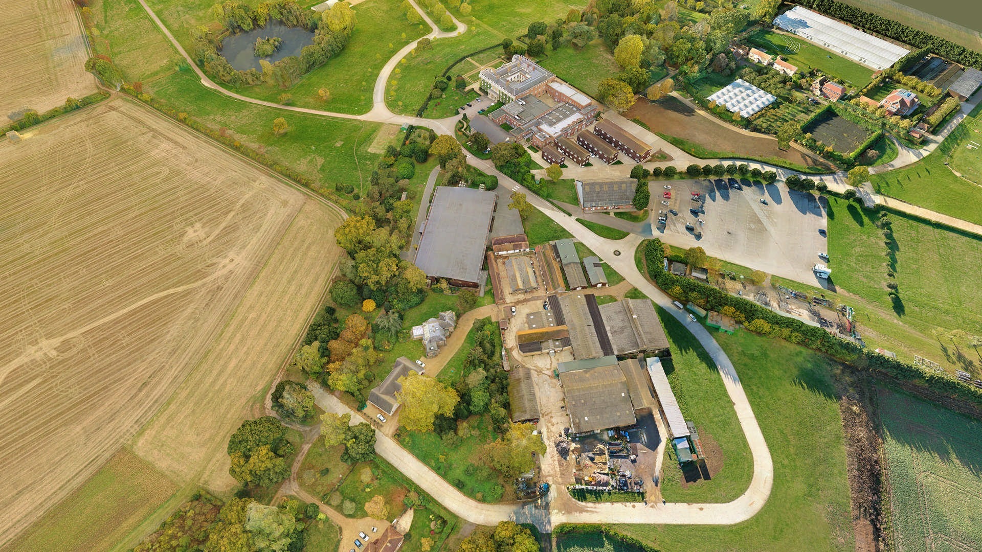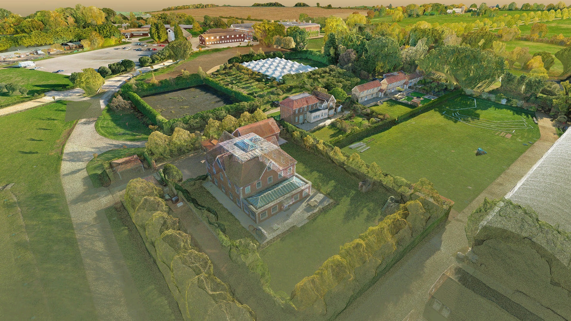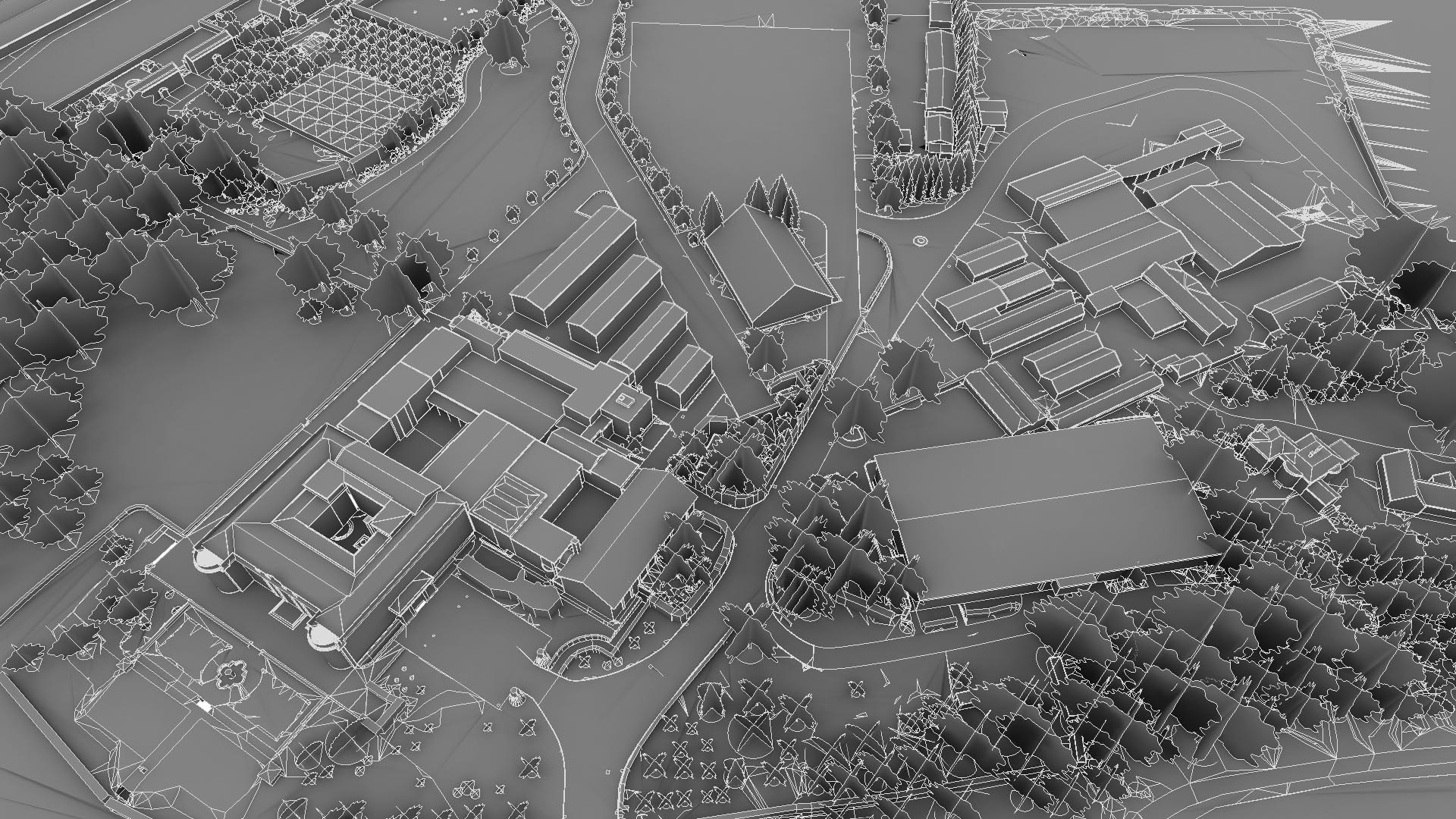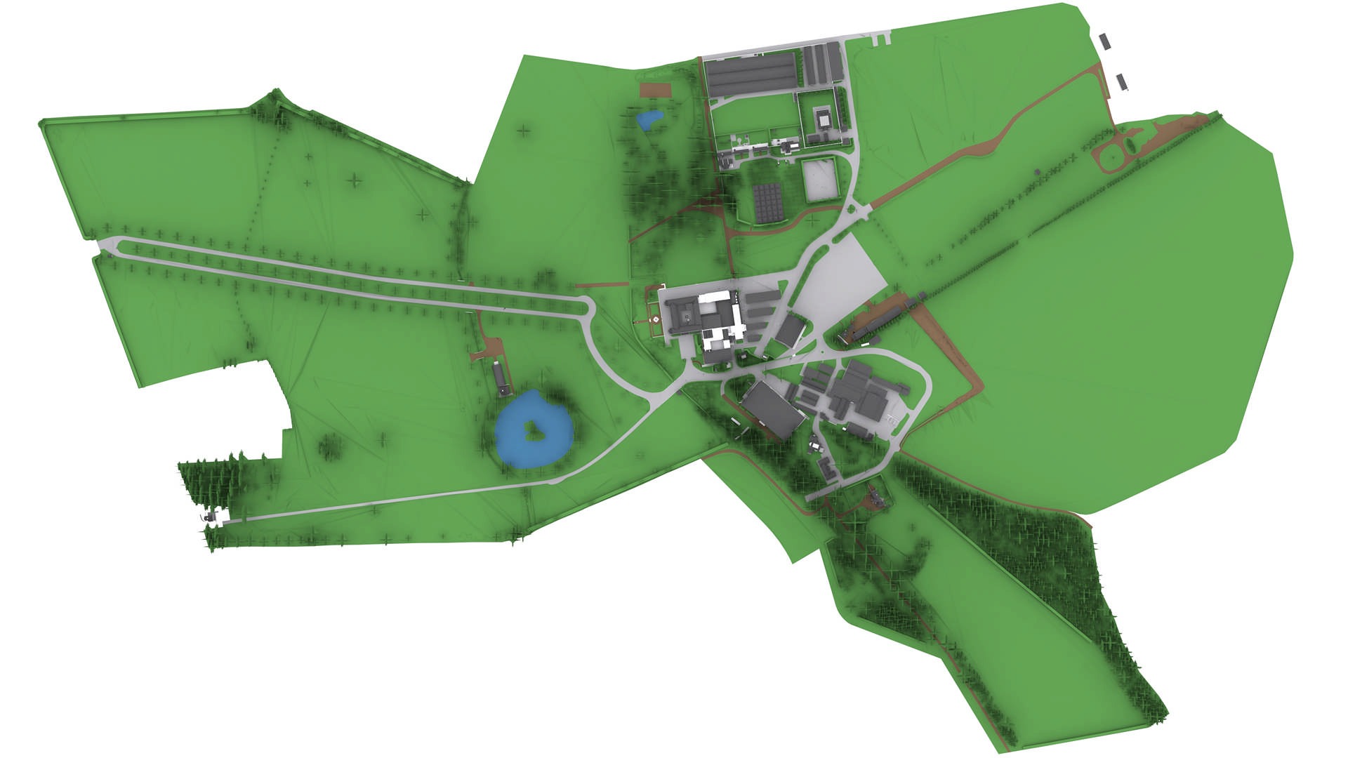 Нас попросили надати топографічне 2D-креслення та BIM-модель. Топографічний план мав використовуватися з подвійною метою: 1) компоненти планування 2) аналіз землі для проєктування/будівництва. Ділянка була досить великою і охоплювала цілий маєток за межами Лондона. Там було кілька будівель, дороги, озеро і широкі поля.