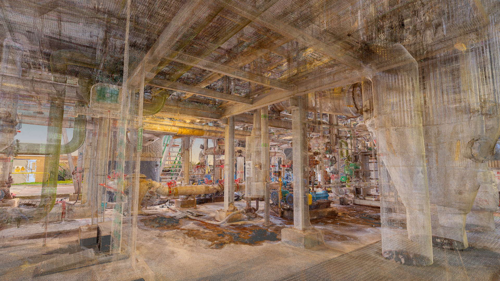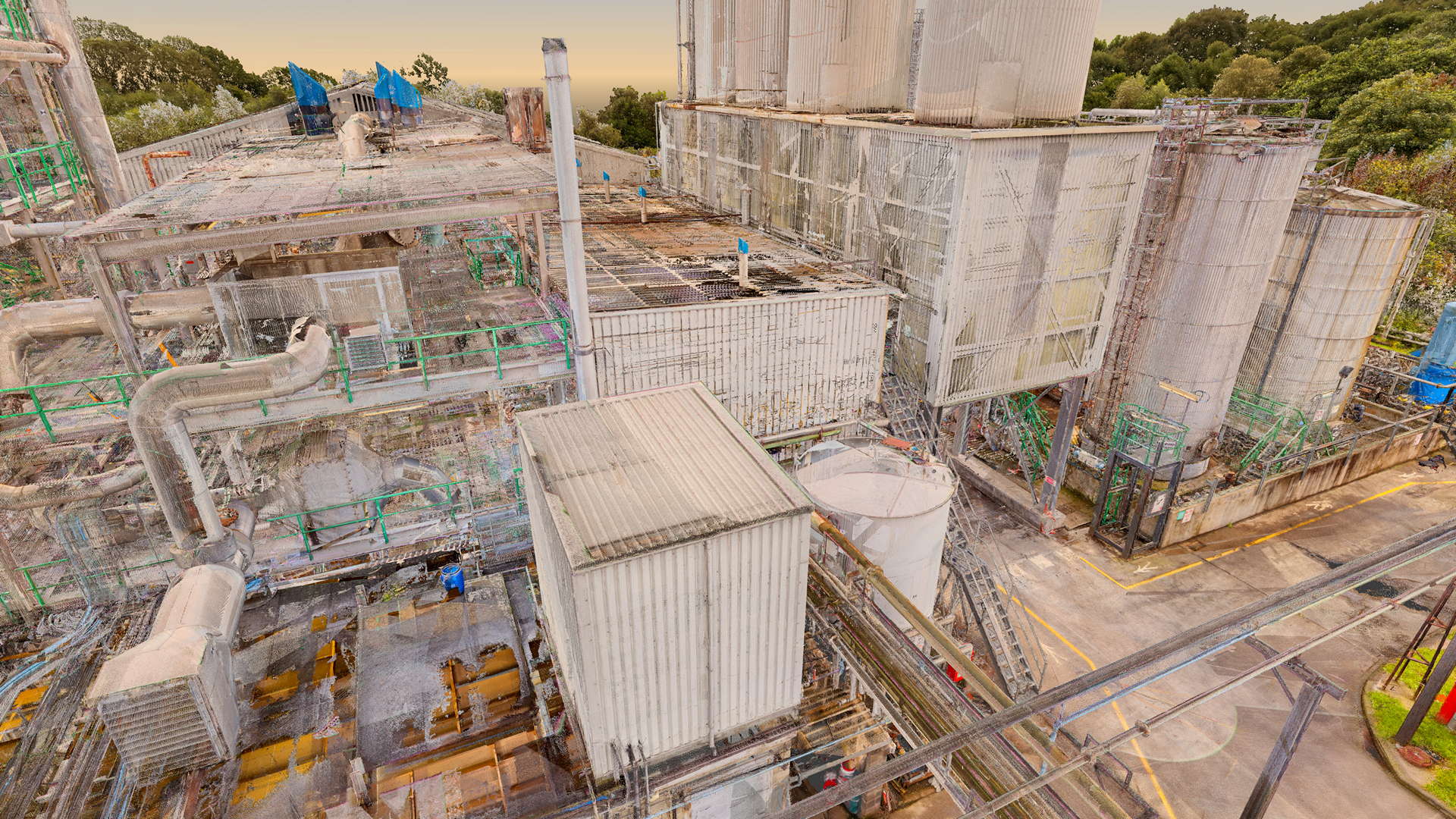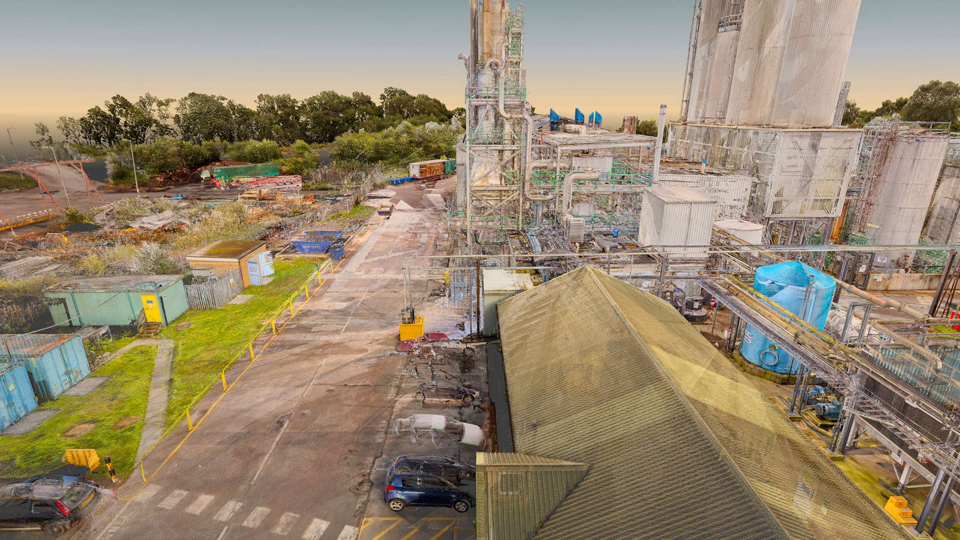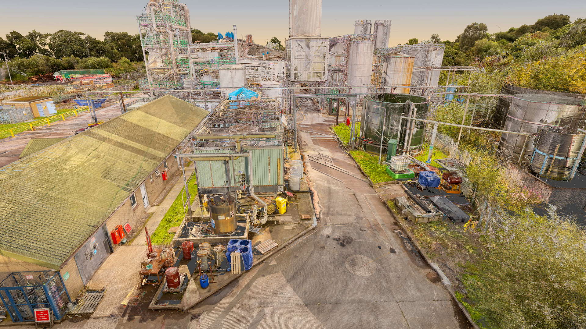 Це хімічний завод середнього розміру, розташований у Шотландії. На першому етапі проєкту ми просканували весь завод і надали клієнтові хмару точок у кольорах RGB разом із TrueView. На другому етапі ми розробили готову модель PDMS усієї території. Модель містила повну базу даних і список для трубопроводів у програмному забезпеченні AVEVA у 3D-форматі.