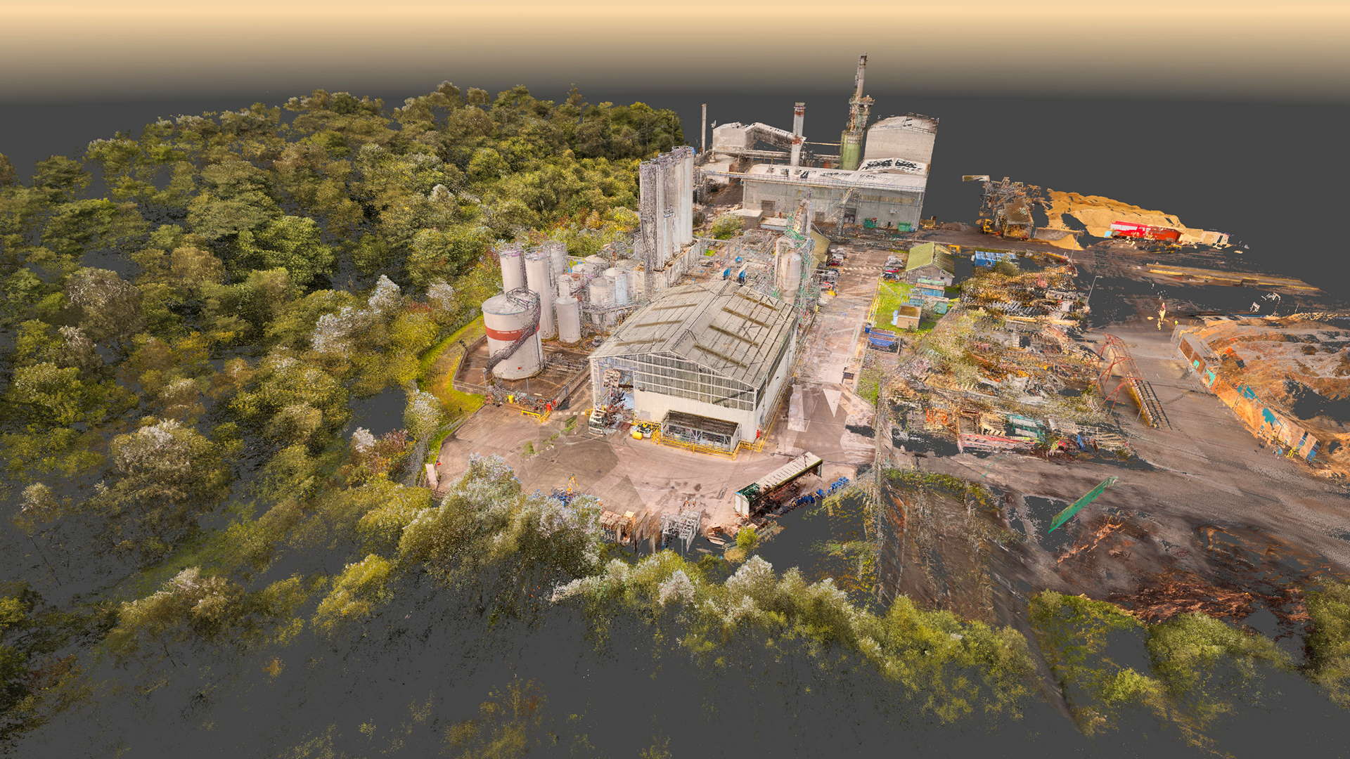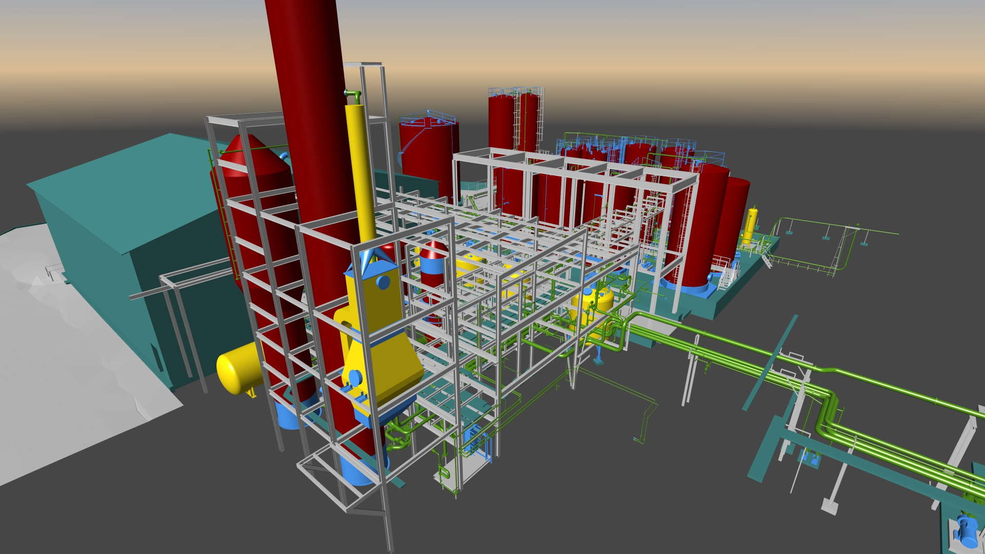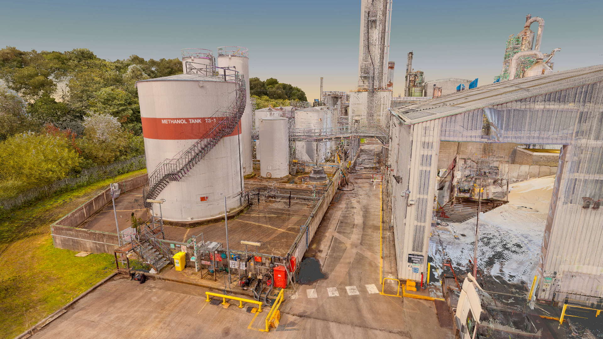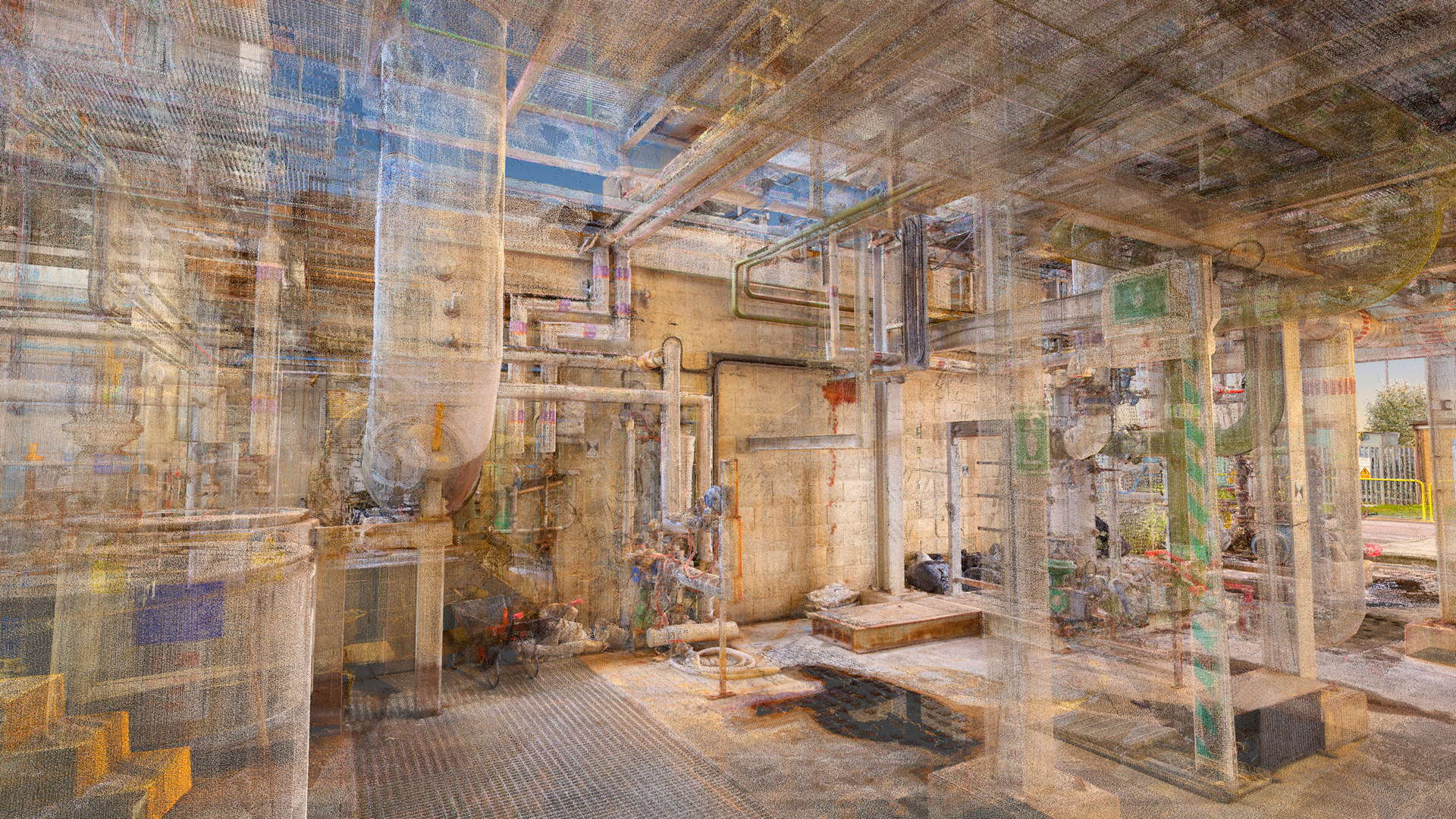 Це хімічний завод середнього розміру, розташований у Шотландії. На першому етапі проєкту ми просканували весь завод і надали клієнтові хмару точок у кольорах RGB разом із TrueView. На другому етапі ми розробили готову модель PDMS усієї території. Модель містила повну базу даних і список для трубопроводів у програмному забезпеченні AVEVA у 3D-форматі.