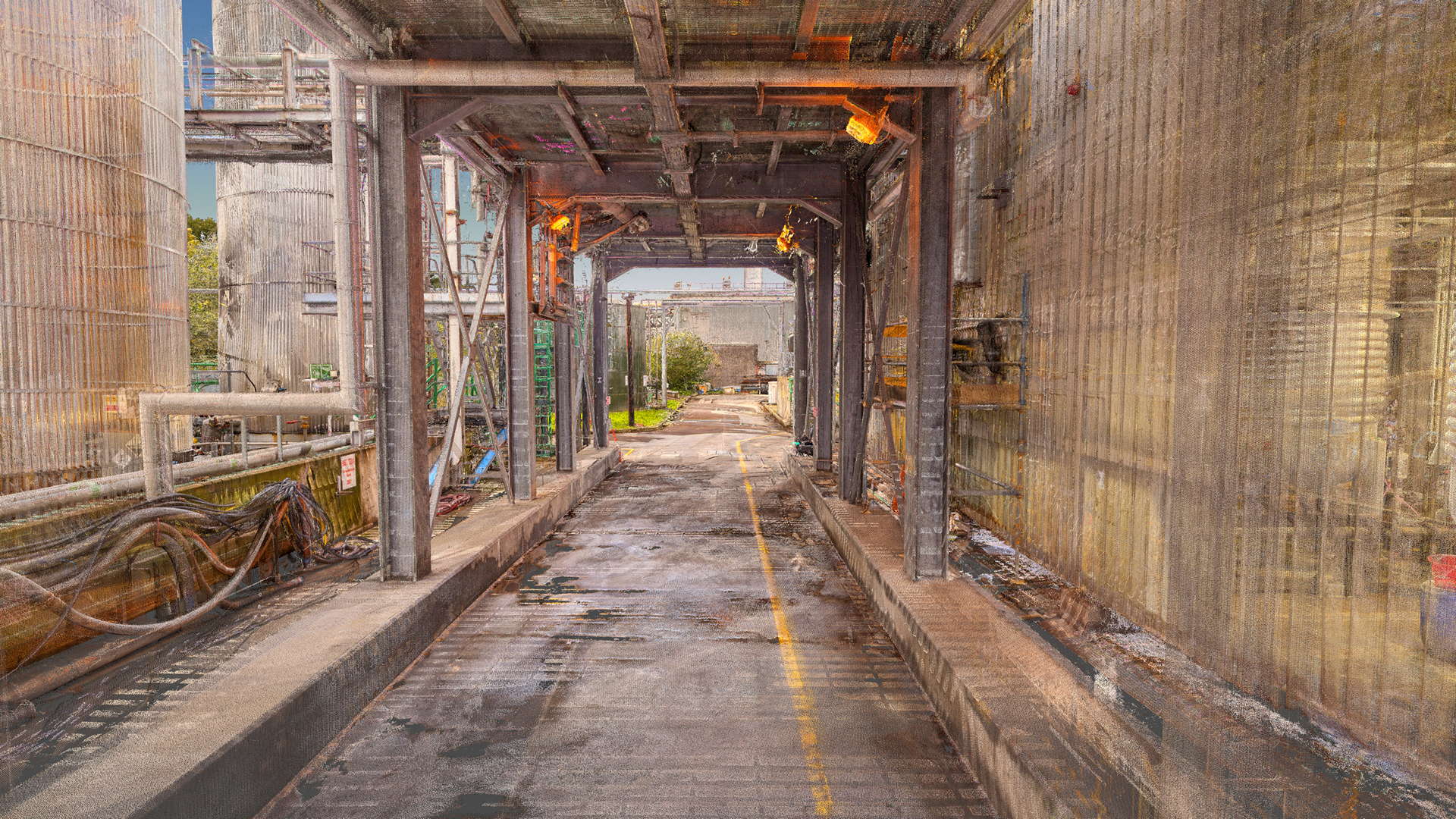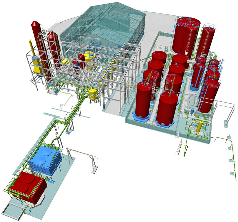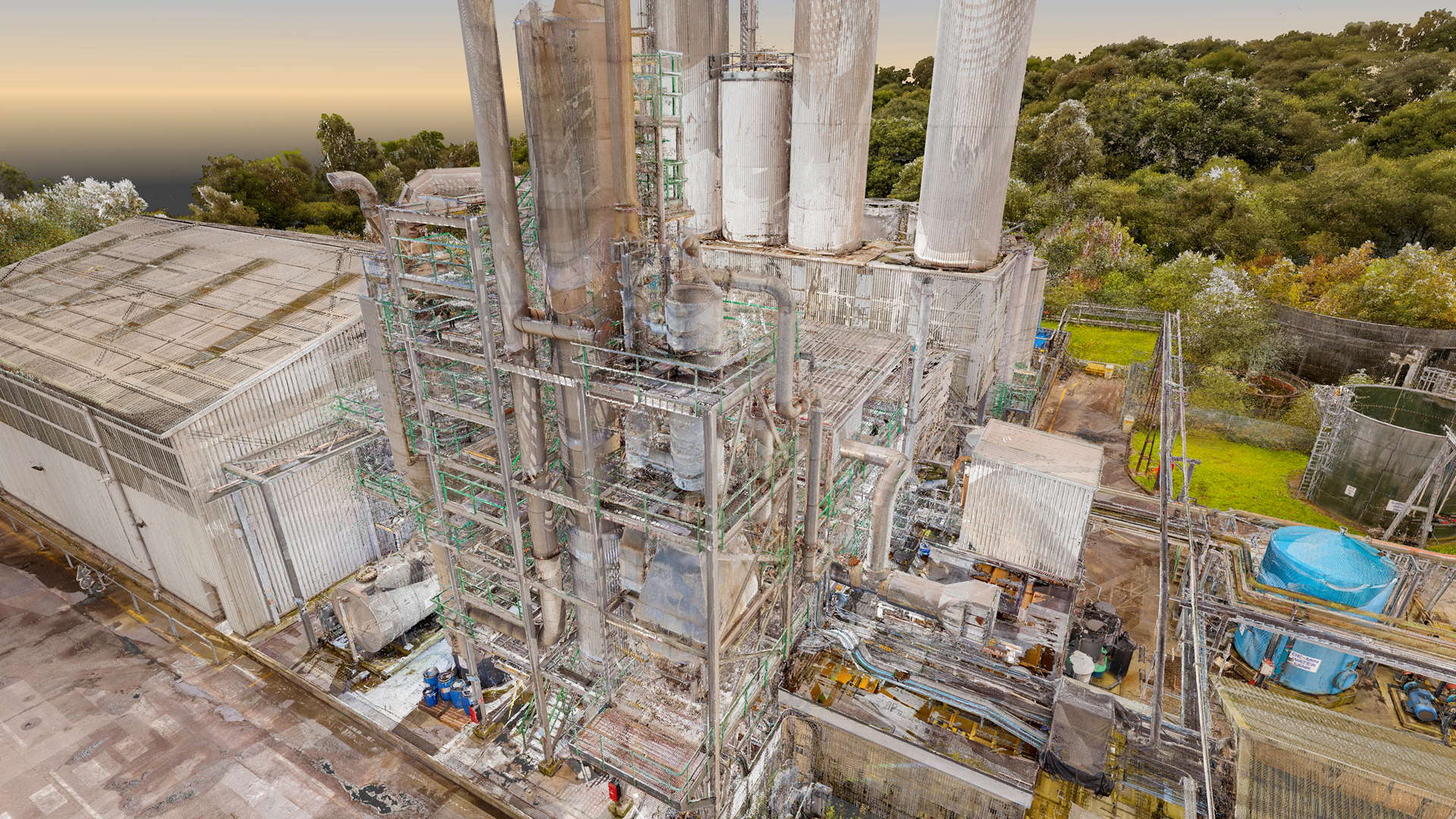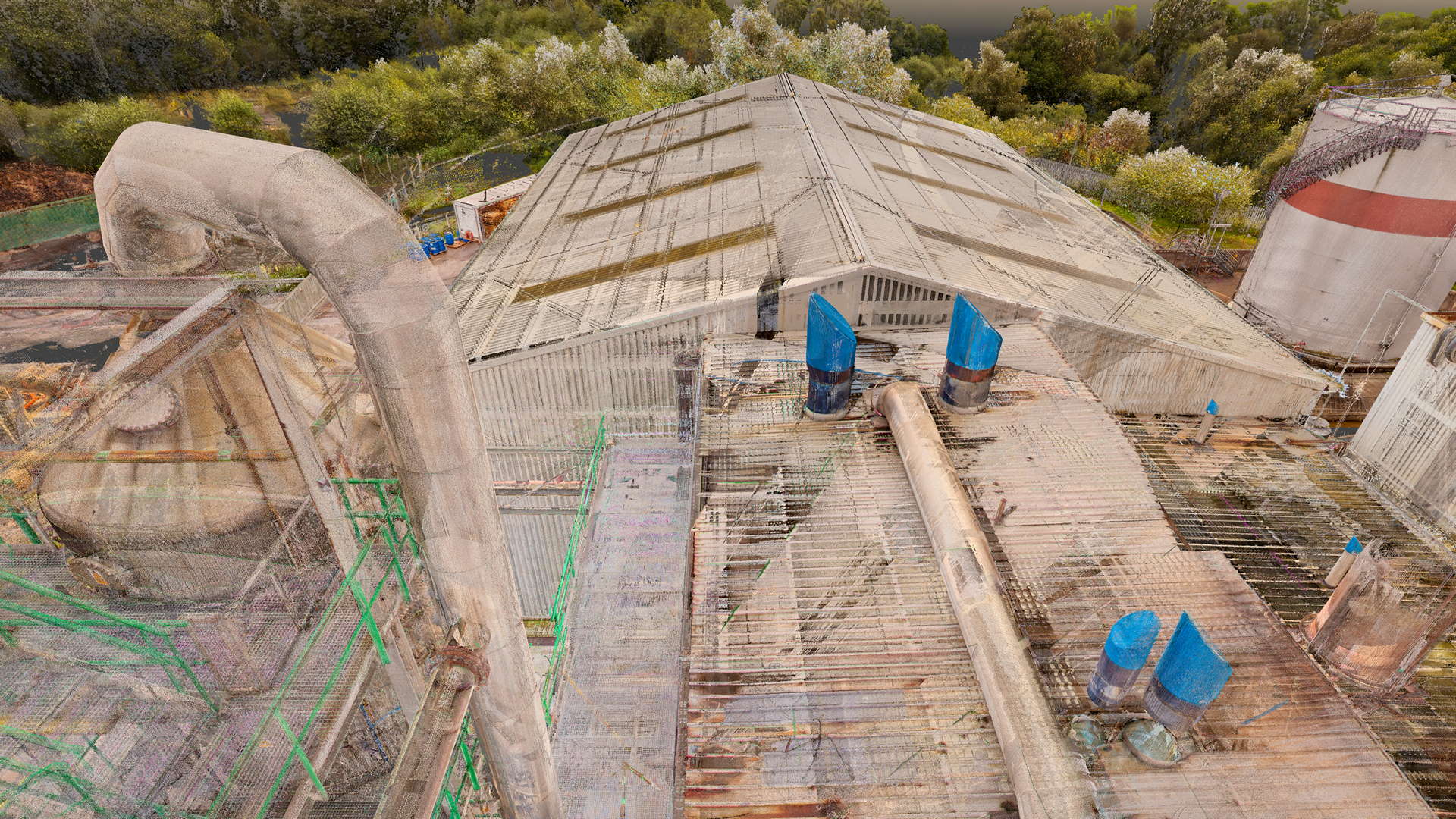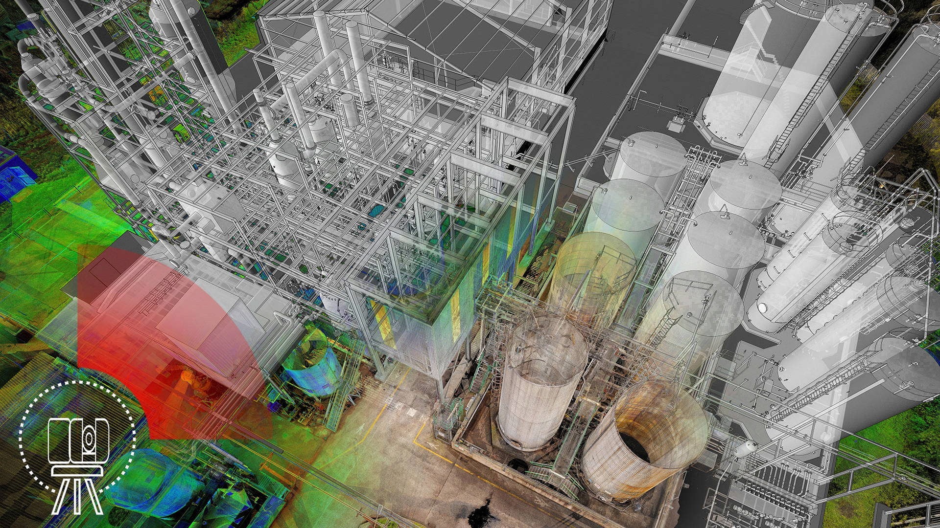 Це хімічний завод середнього розміру, розташований у Шотландії. На першому етапі проєкту ми просканували весь завод і надали клієнтові хмару точок у кольорах RGB разом із TrueView. На другому етапі ми розробили готову модель PDMS усієї території. Модель містила повну базу даних і список для трубопроводів у програмному забезпеченні AVEVA у 3D-форматі.