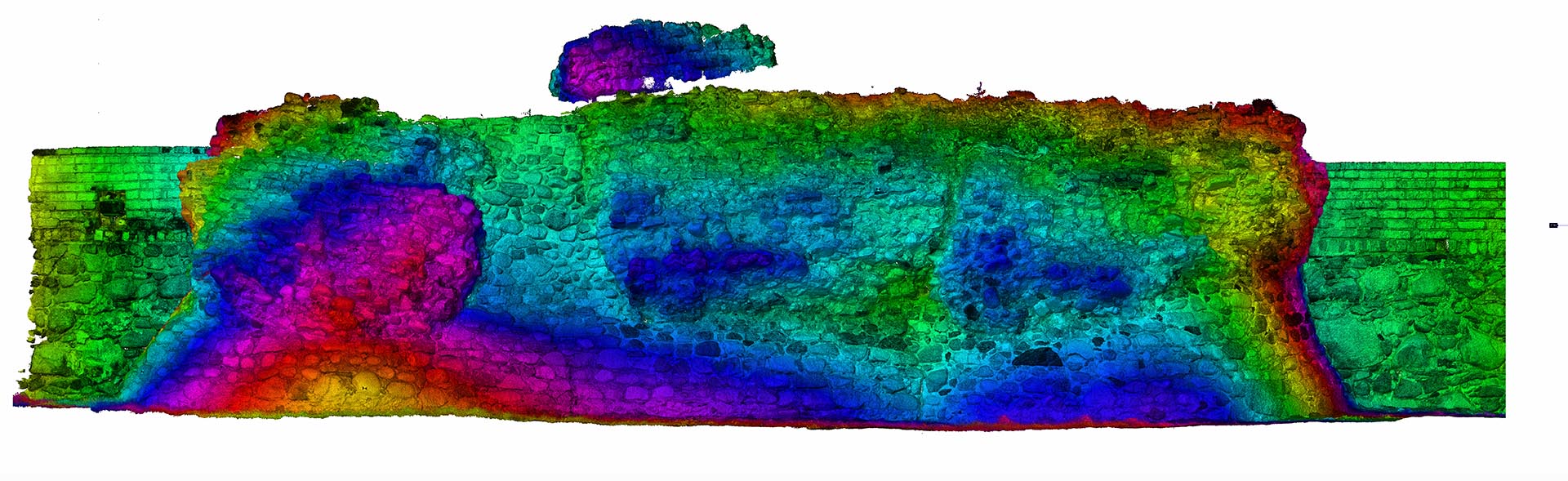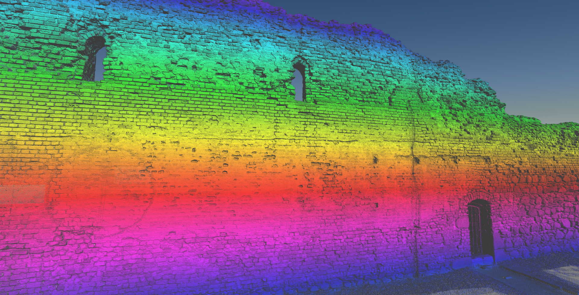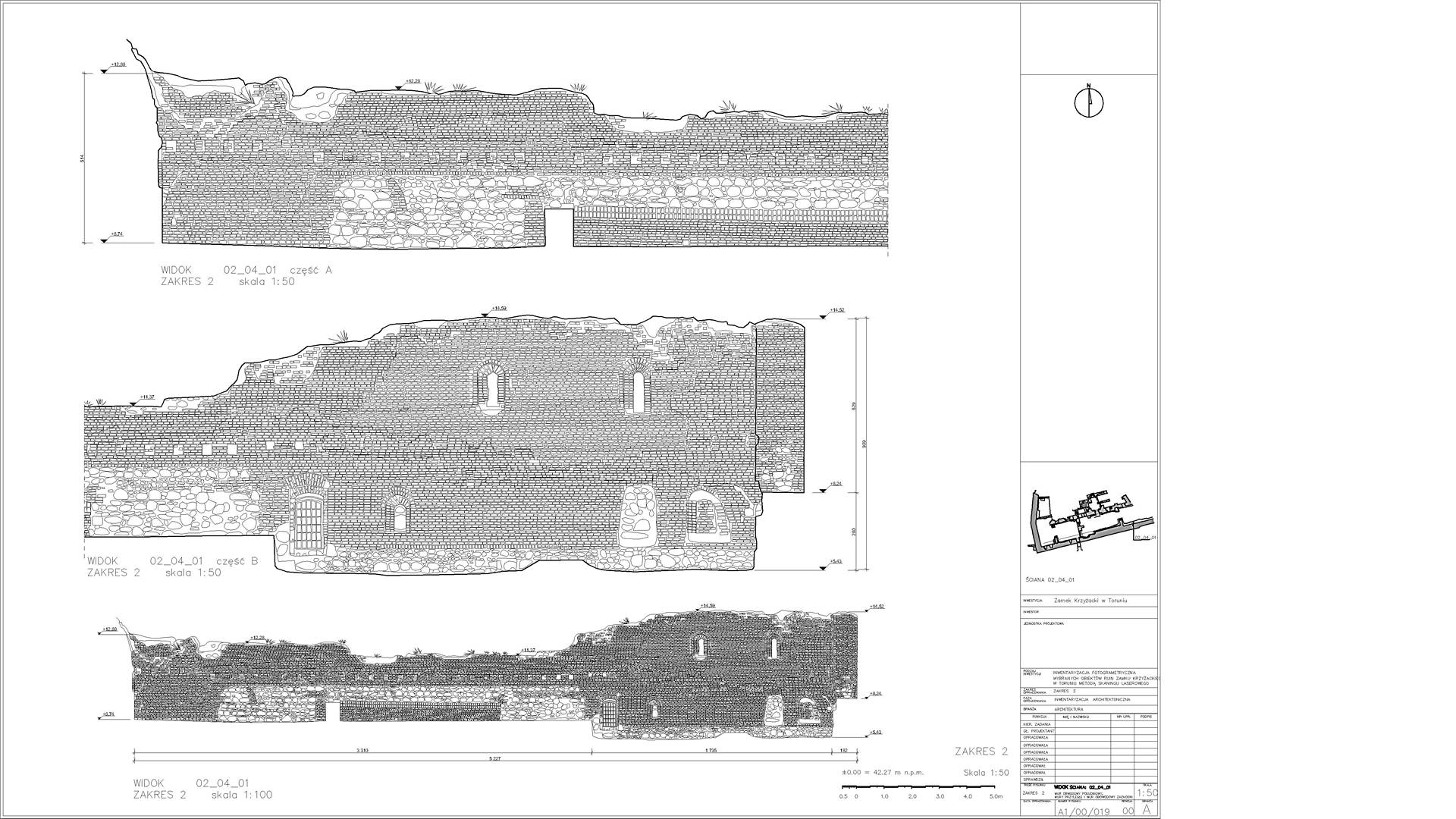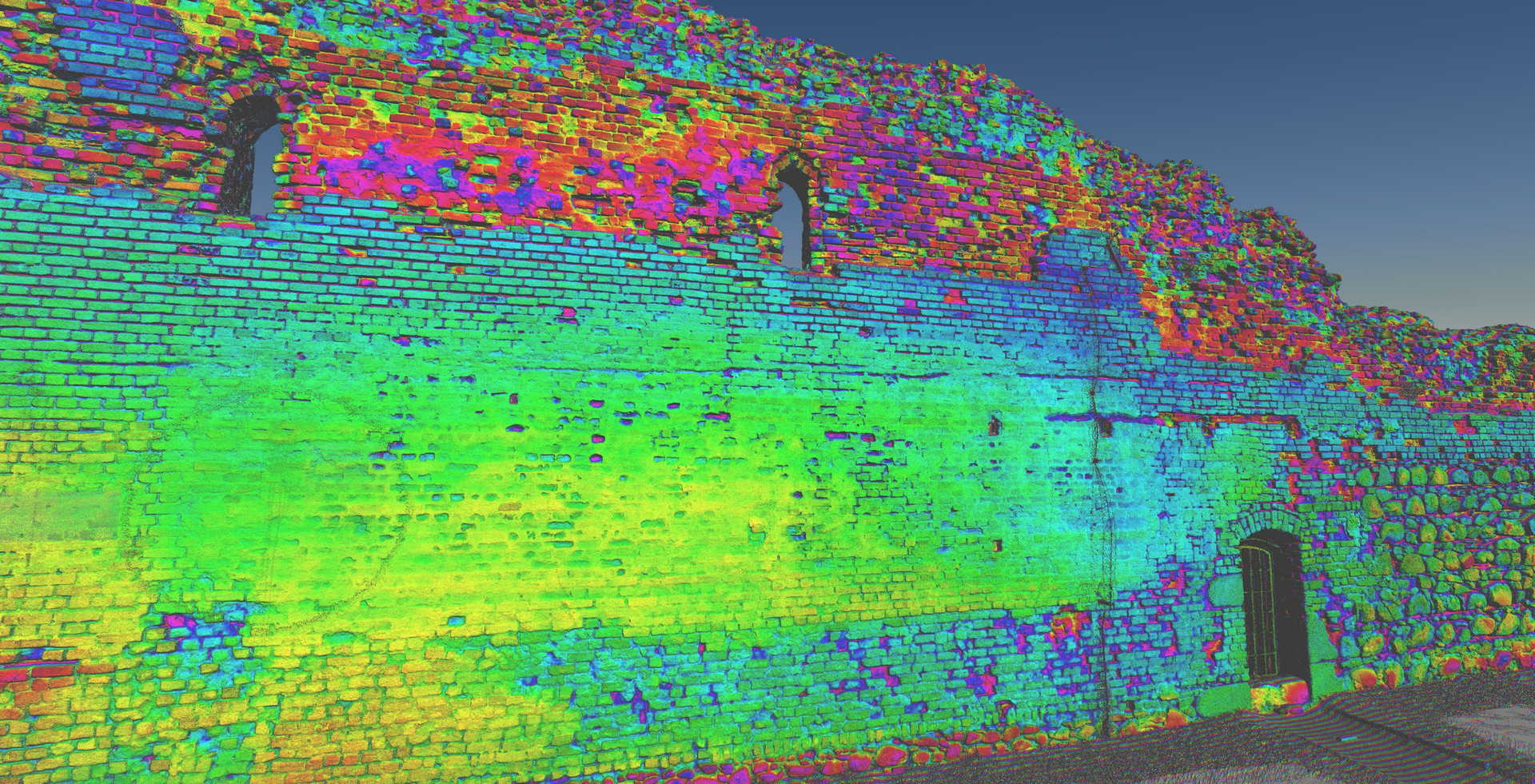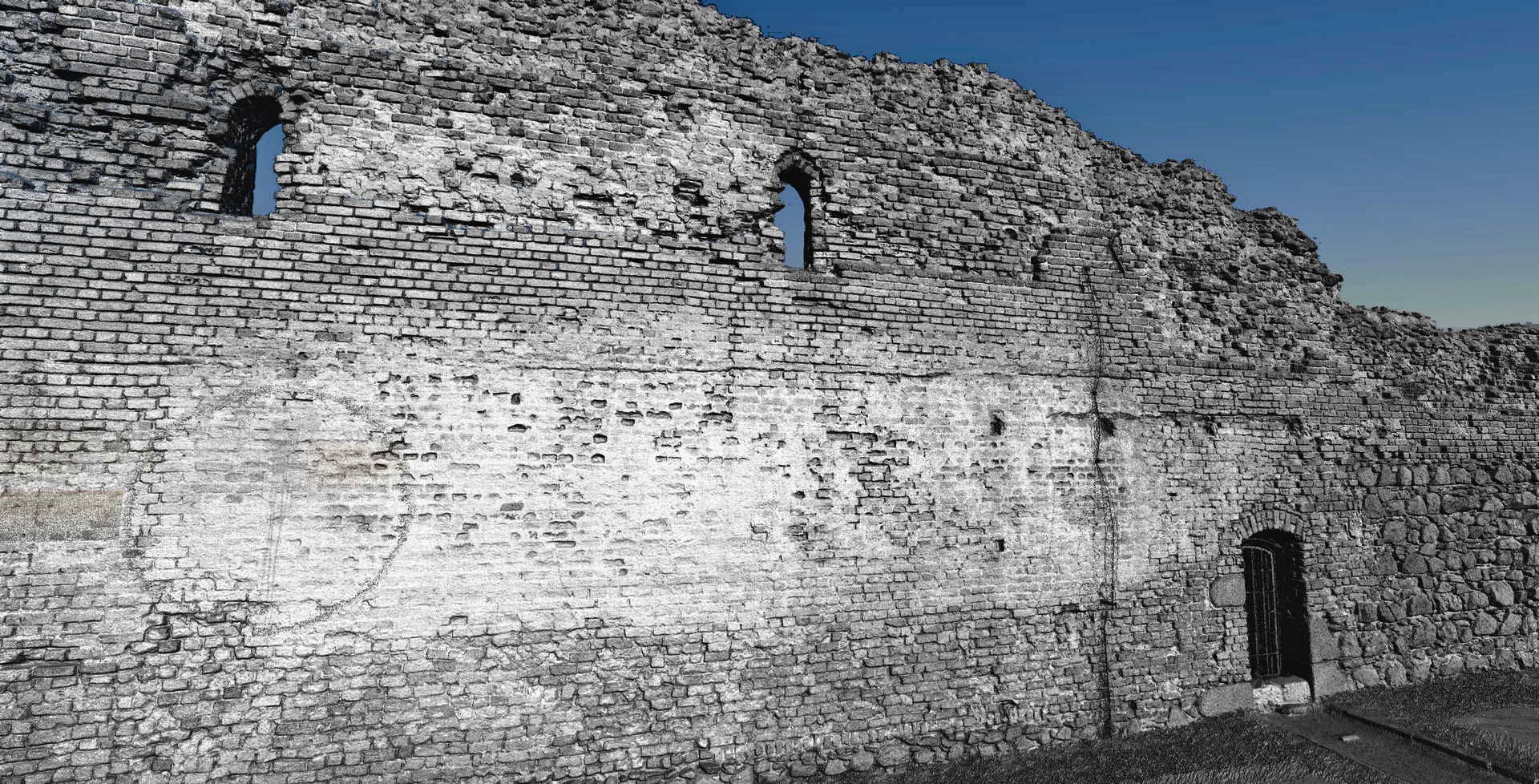 Висоти зруйнованих стін були побудовані у форматі 2D з набору даних, які демонстрували окремі камені. Також ми створили візуалізацію з хмари точок, яка зображує залишки замку. Основна стіна з боку річки Вісли (найвища та найвеличніша ділянка) була додатково відсканована в кольорах RGB.