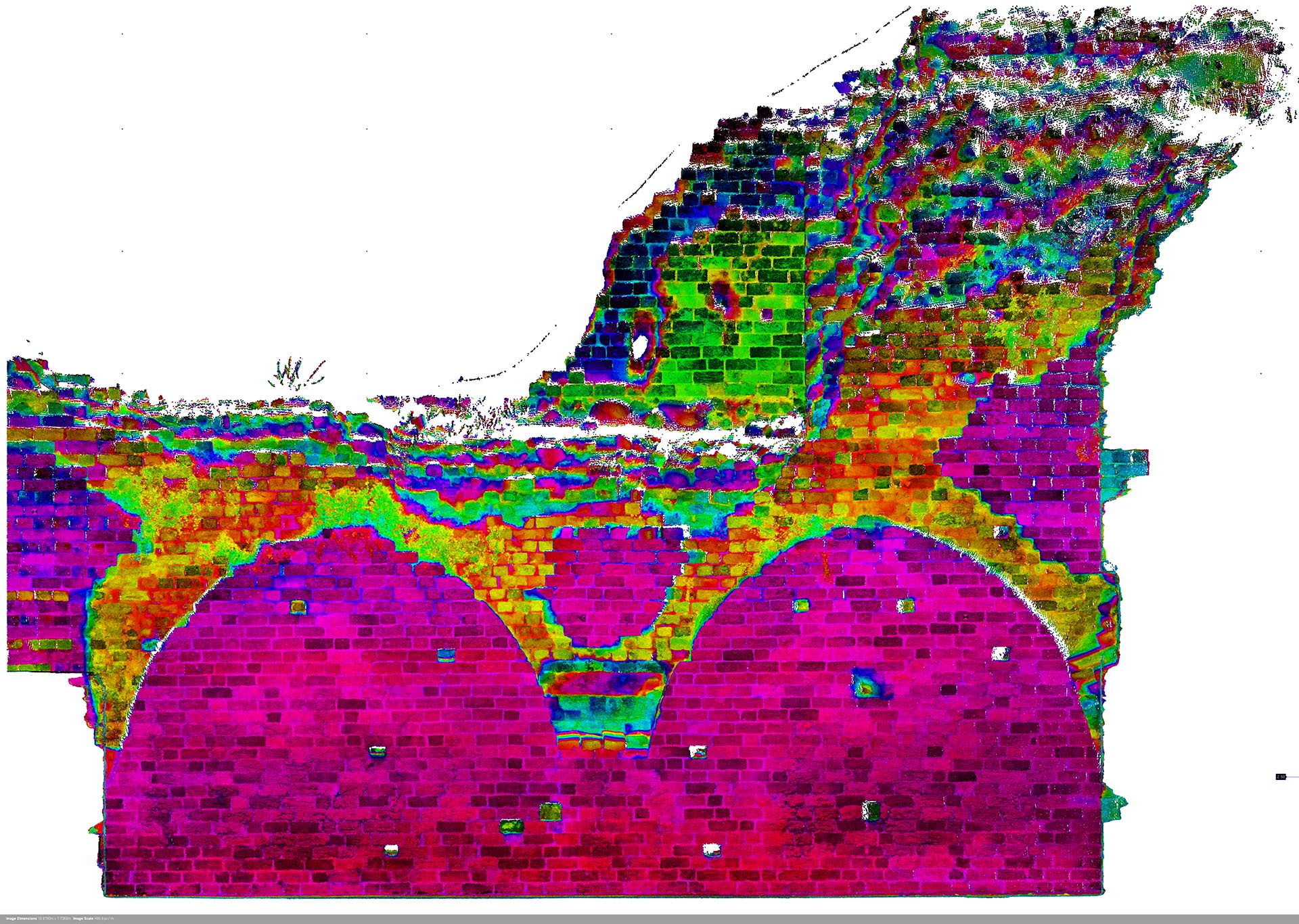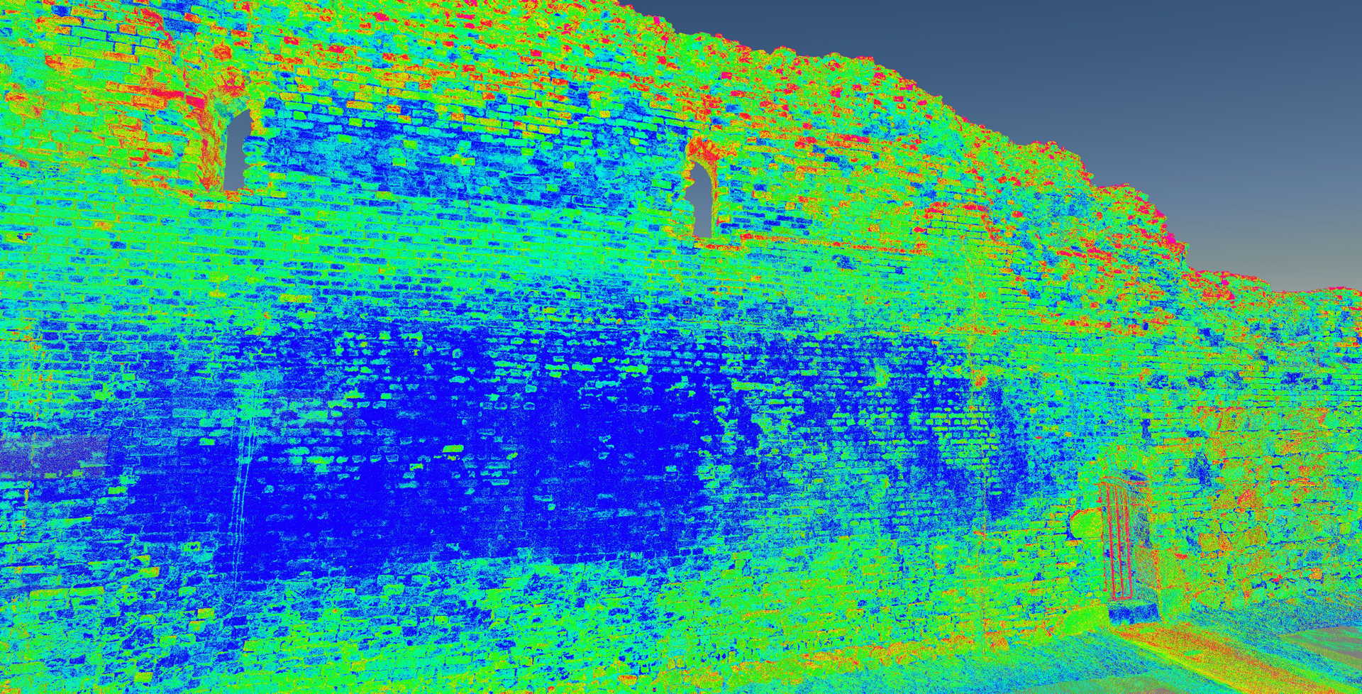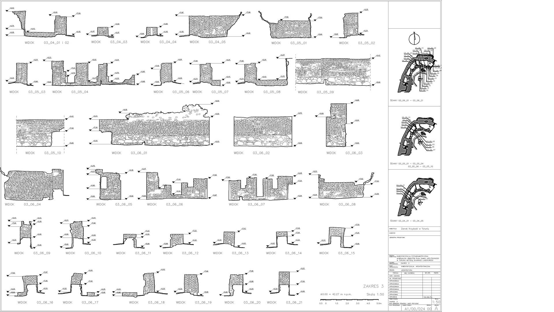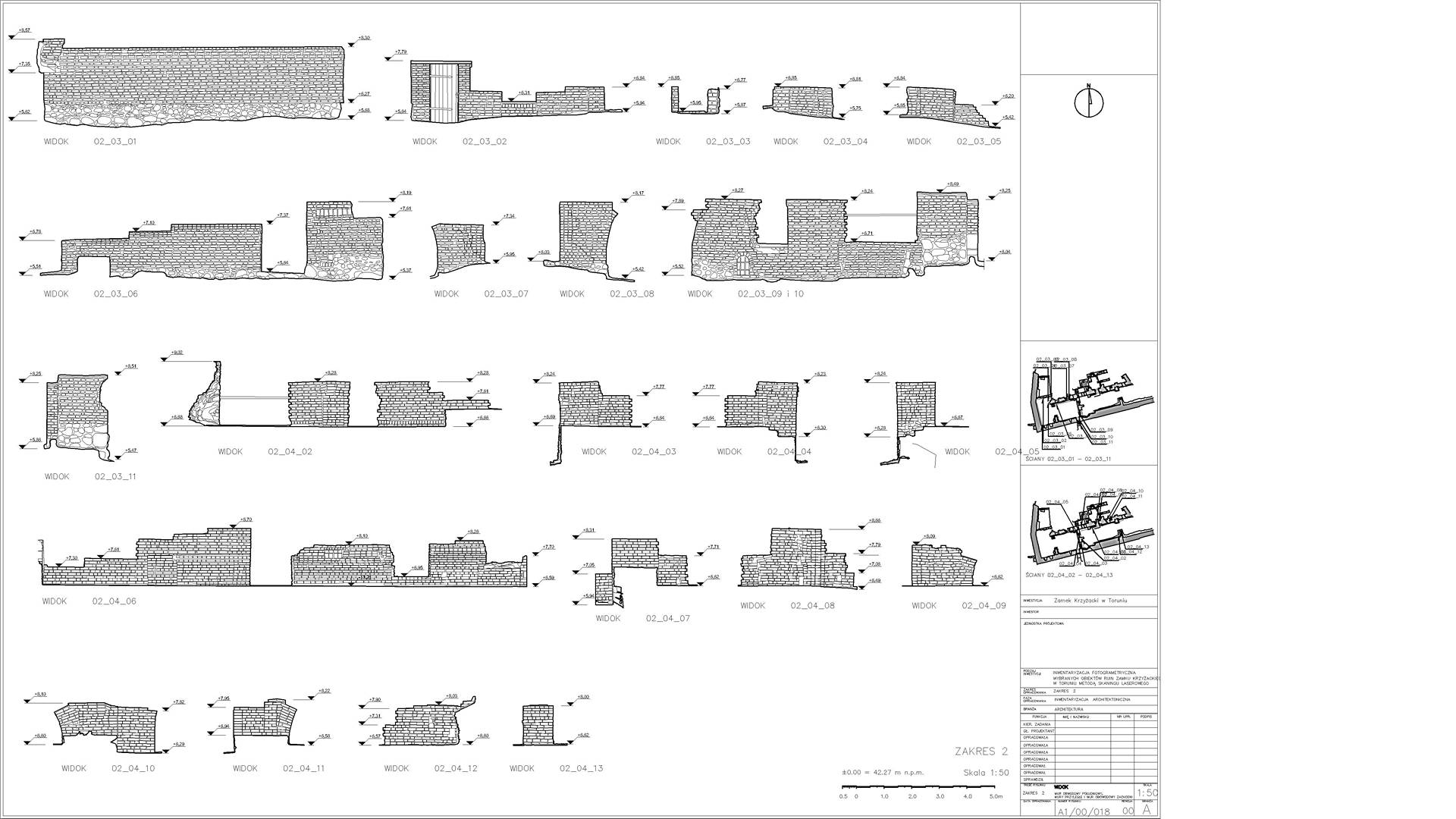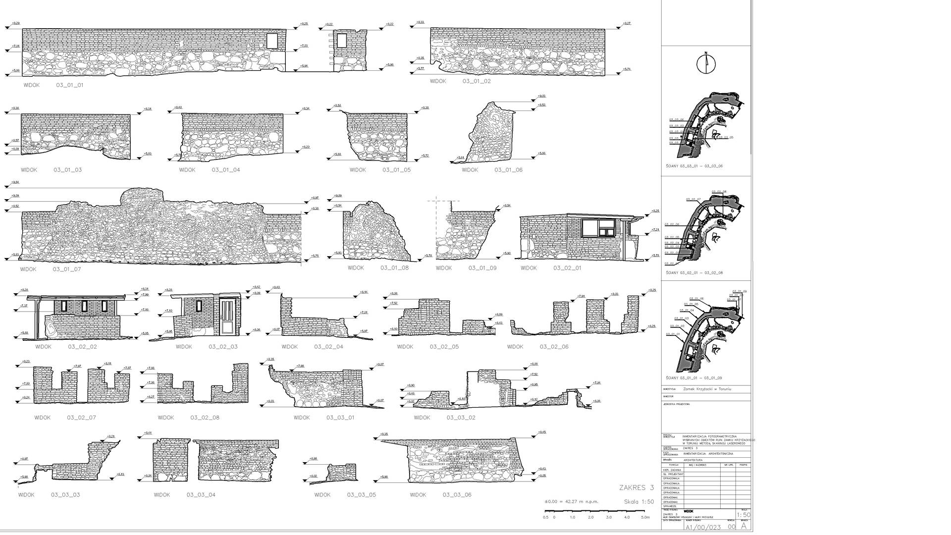 Висоти зруйнованих стін були побудовані у форматі 2D з набору даних, які демонстрували окремі камені. Також ми створили візуалізацію з хмари точок, яка зображує залишки замку. Основна стіна з боку річки Вісли (найвища та найвеличніша ділянка) була додатково відсканована в кольорах RGB.