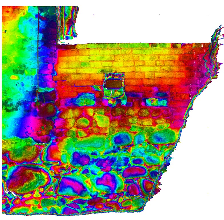 Висоти зруйнованих стін були побудовані у форматі 2D з набору даних, які демонстрували окремі камені. Також ми створили візуалізацію з хмари точок, яка зображує залишки замку. Основна стіна з боку річки Вісли (найвища та найвеличніша ділянка) була додатково відсканована в кольорах RGB.