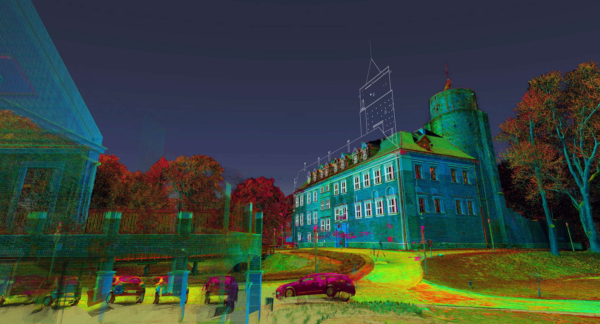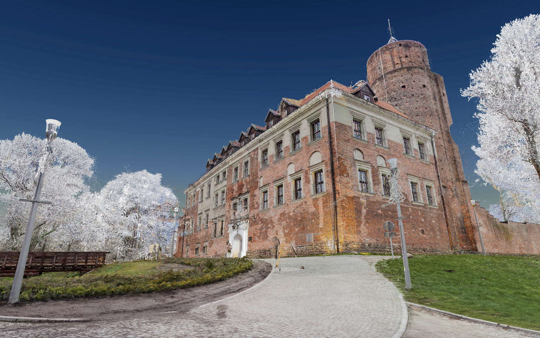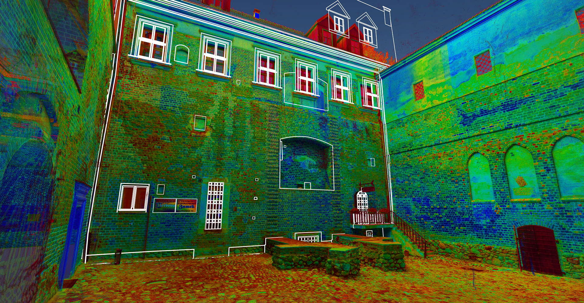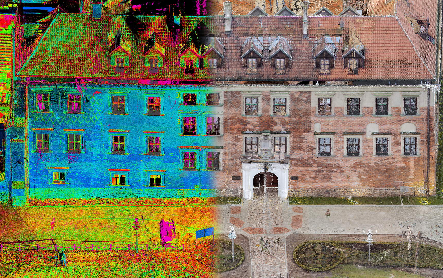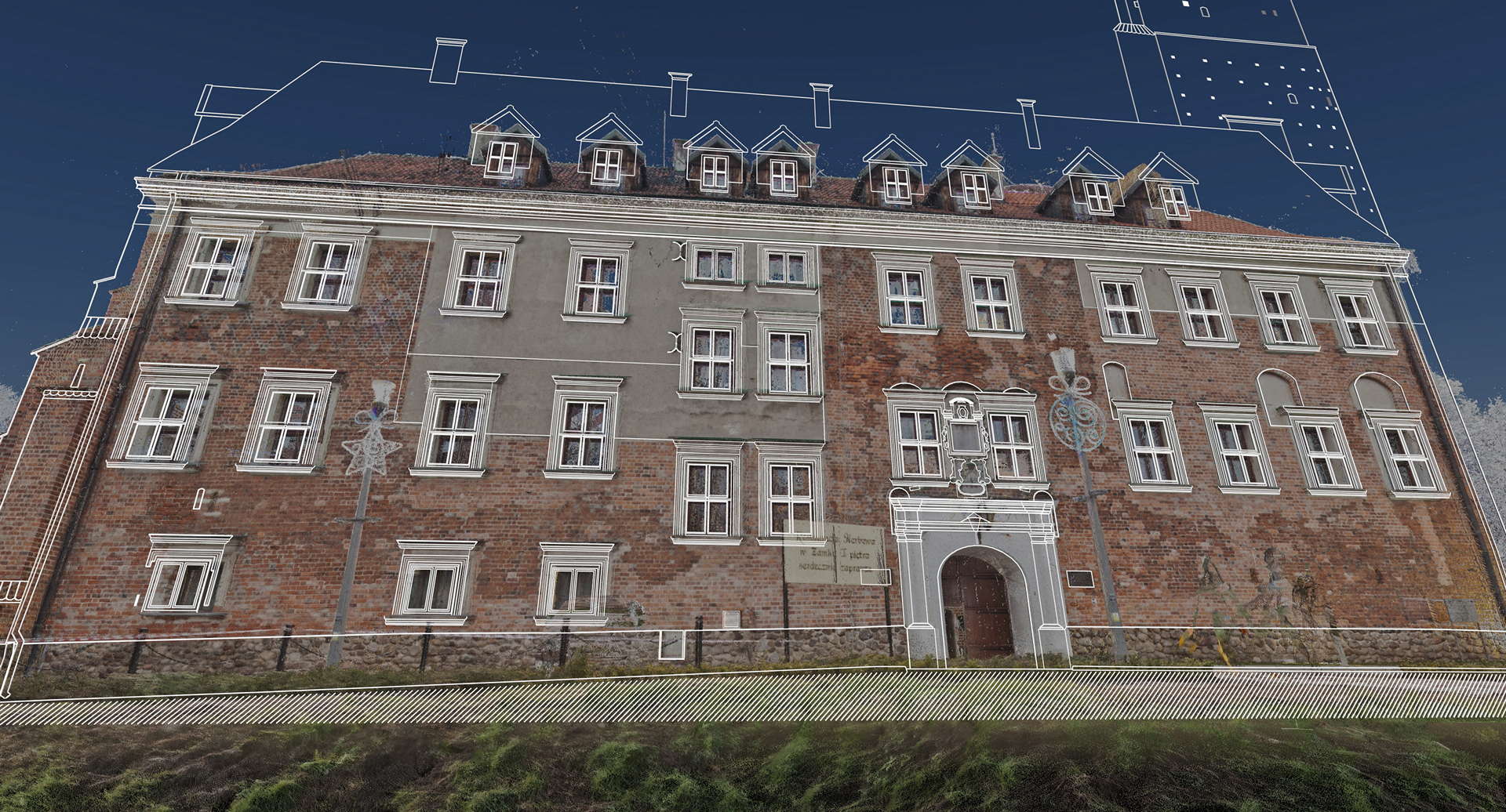 Лазерне сканування фасаду замку у стилі ренесанс в Унєюві (розташоване в центральній Польщі)було виконане на замовлення Управління з питань національної спадщини Польщі Лодзького воєводства. Метою проєкту було створення документації щодо поточного стану фасадів будівель, на основі якої плануватимуть реставраційно-консерваційні роботи.